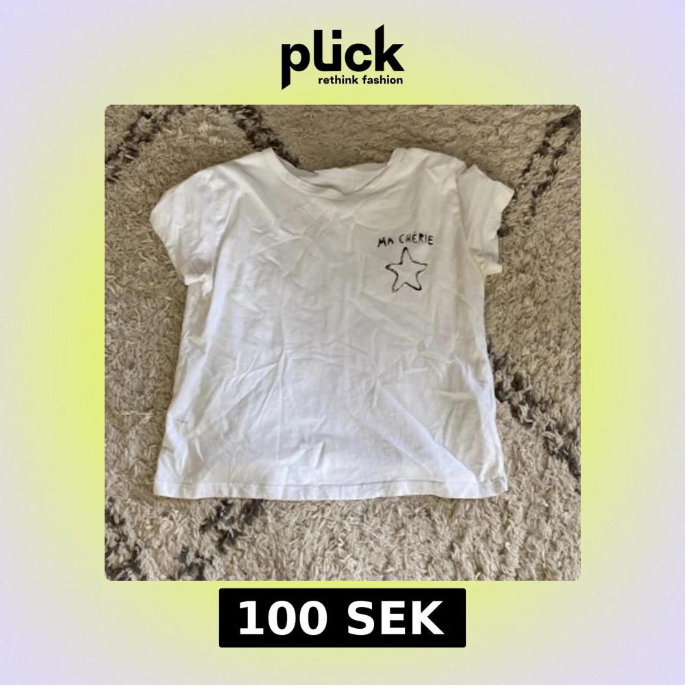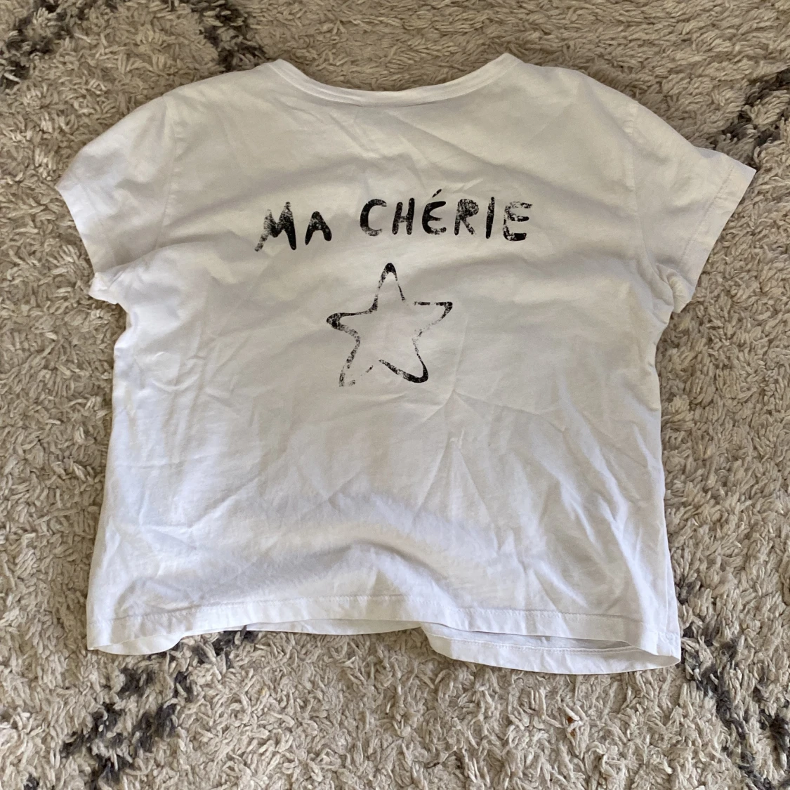 Vit t-shirt i bomull med svart tryck av stjärna och texten 'MA CHÉRIE' både fram och bak. Klassisk rund hals och korta ärmar. Enkel och chill stil som passar perfekt till jeans eller shorts.