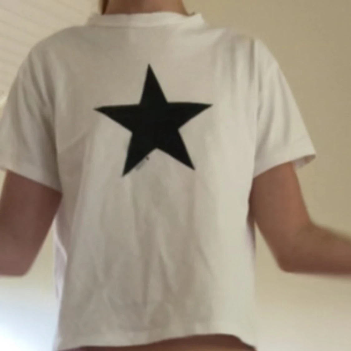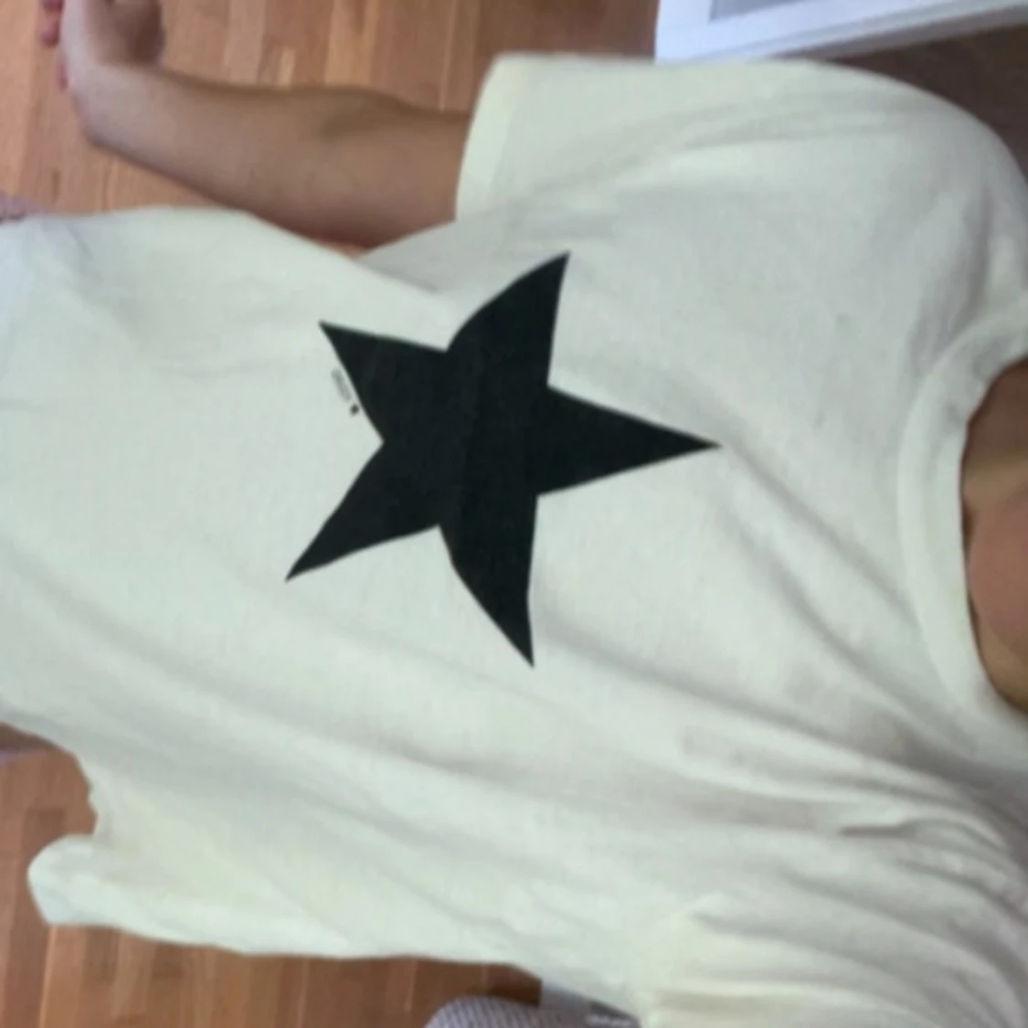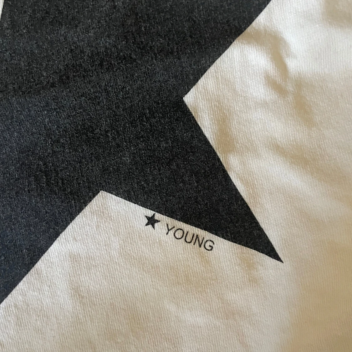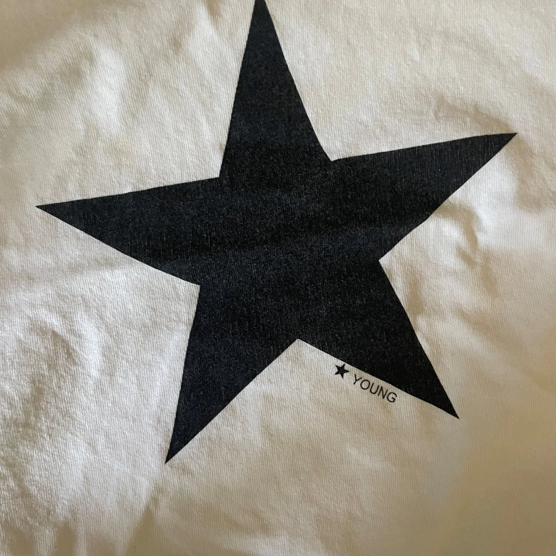 Vit t-shirt från Gina Tricot med en stor svart stjärna och ”Young” mindre under stjärnan!!