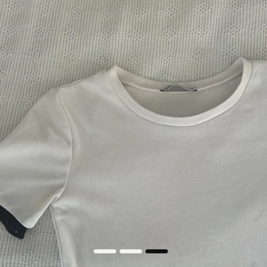 Super fin vit t-shirt med svarta detaljer. Jätte bra skick, och säljer då den tyvärr inte kommer till användning. Skriv privat för fler bilder💗💗💗