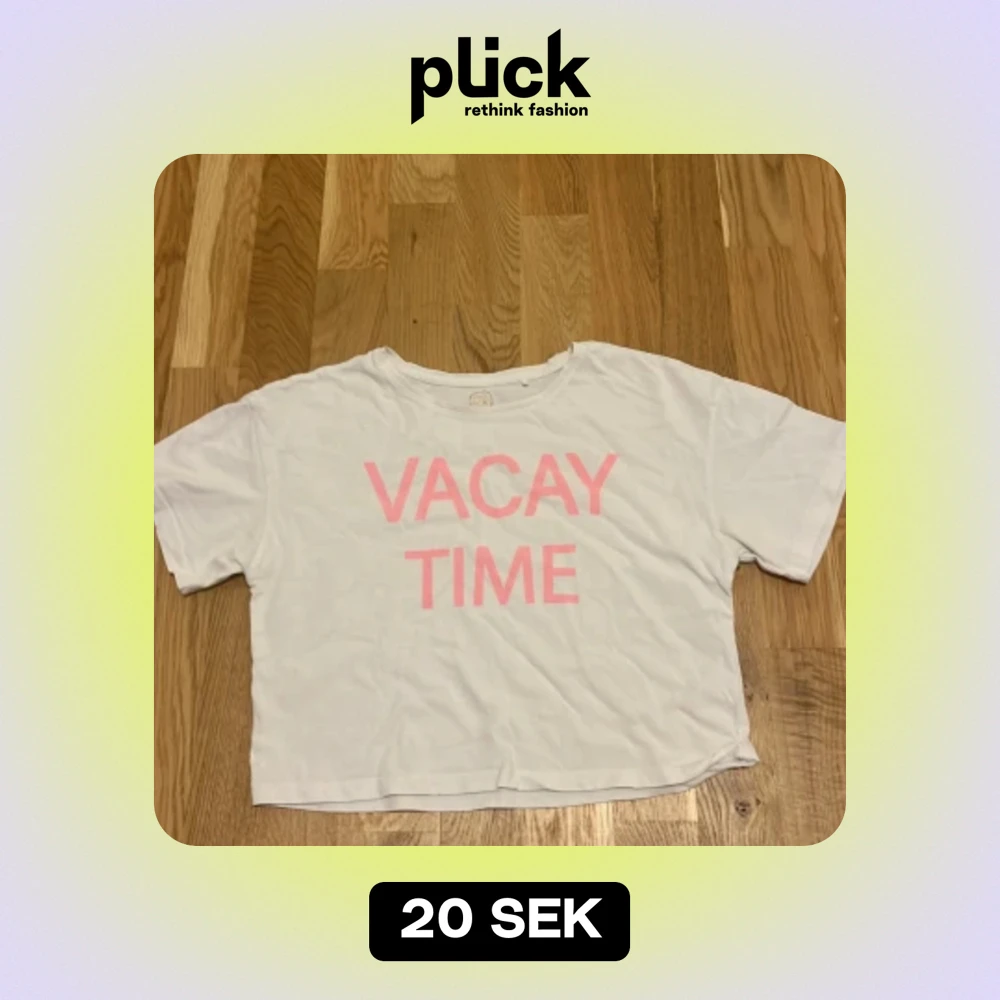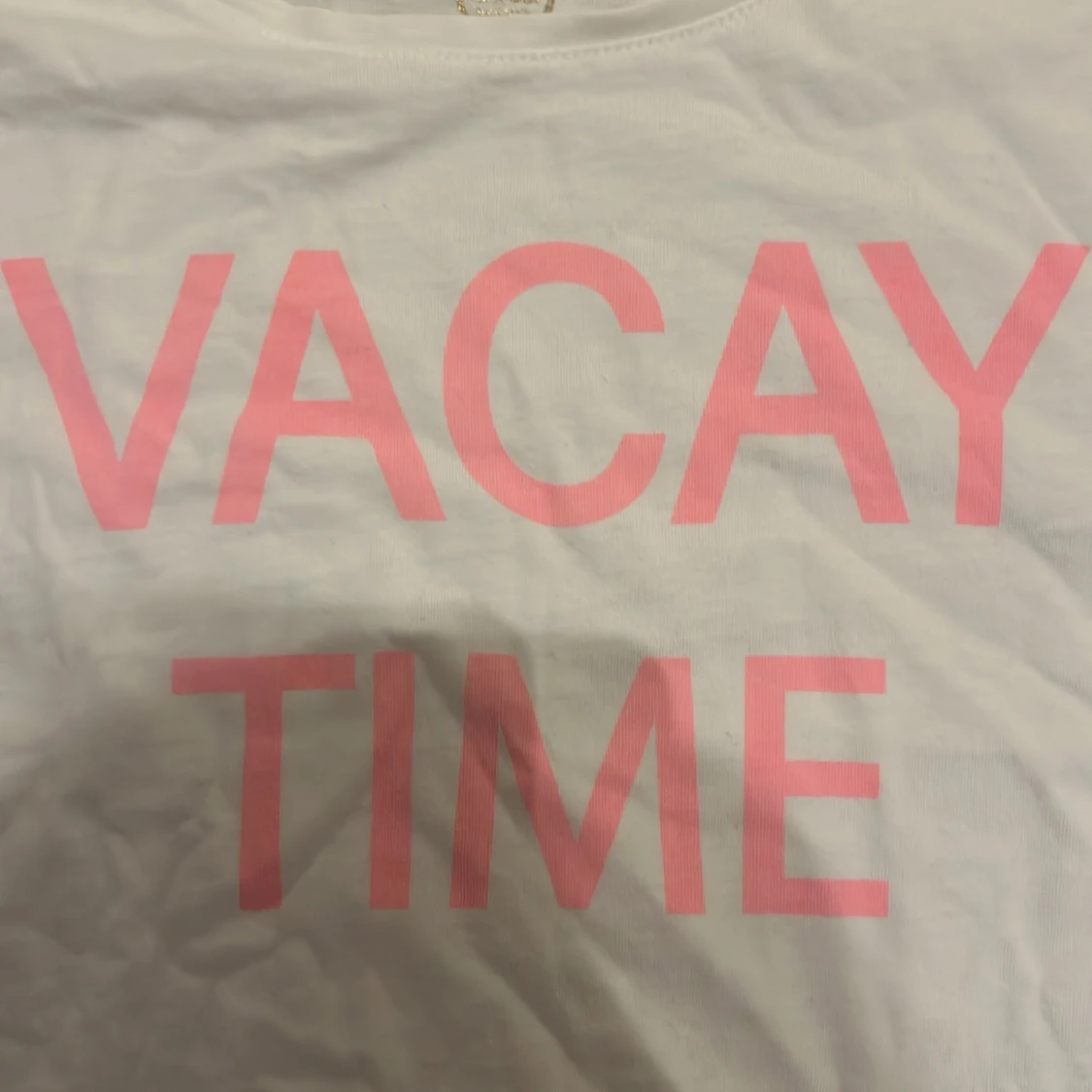 En vit t-shirt från Cool Club med texten 'VACAY TIME' i rosa på framsidan. T-shirten har korta ärmar, en rund halsringning och den är litr croppad.