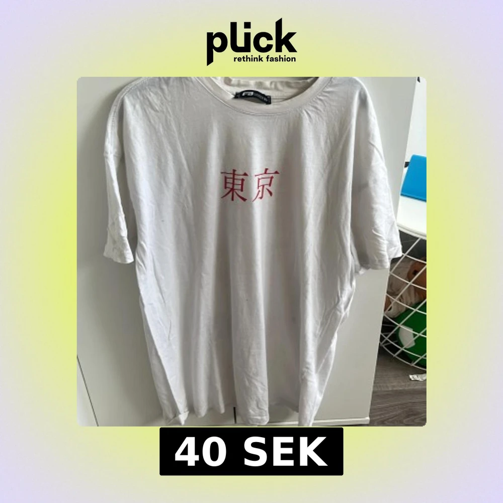 Vit t-shirt från FB Sister med rött japanskt tecken på framsidan och stor grafisk print med koi-fiskar och texten 'TOKYO JAPAN' på baksidan. Klassisk passform och rund halsringning. Perfekt för dig som gillar streetstyle och unika prints. Oversized