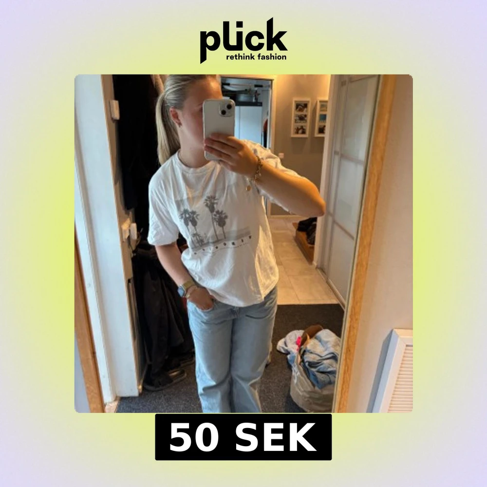 Vit t-shirt med tryck. Loose fit och i storlek Medium