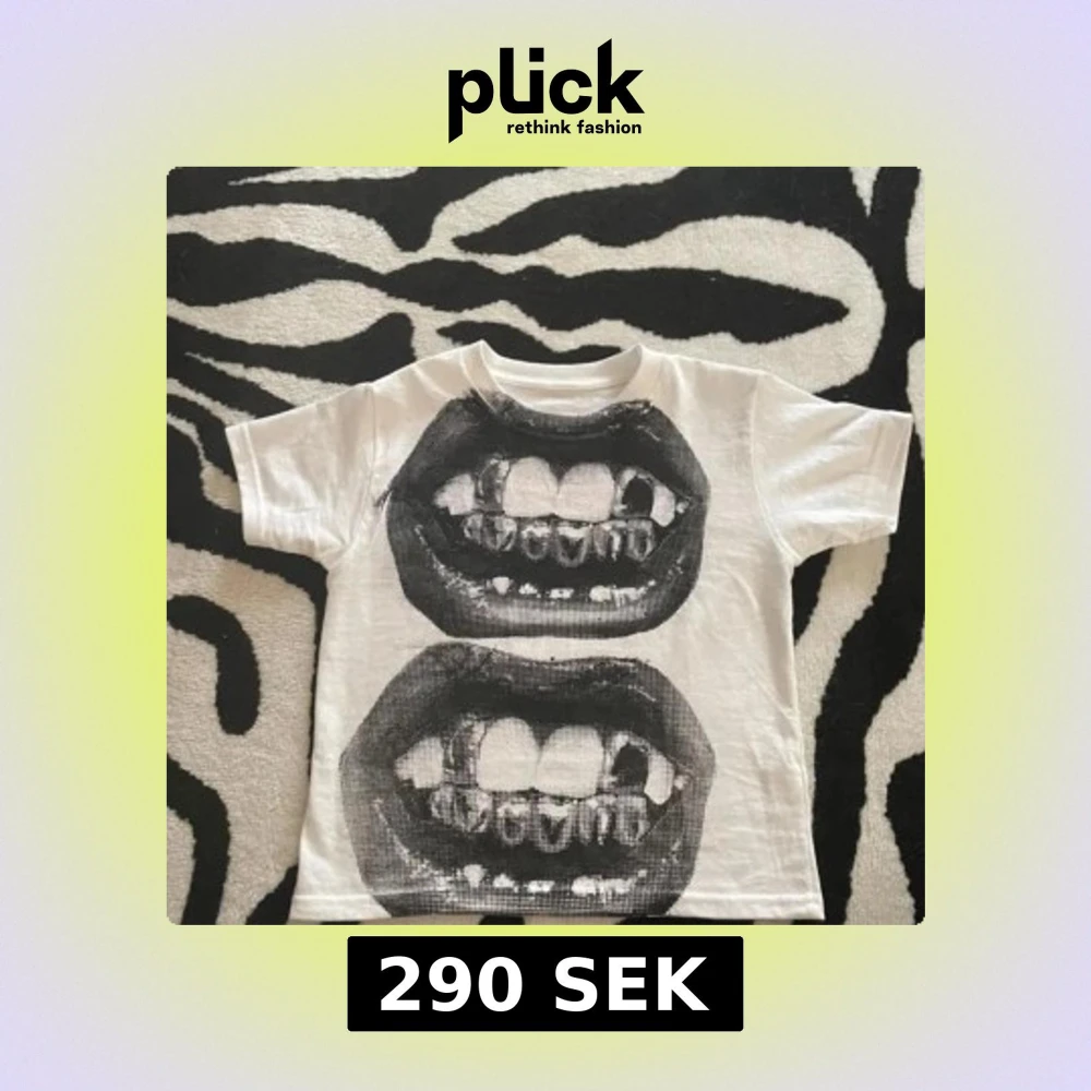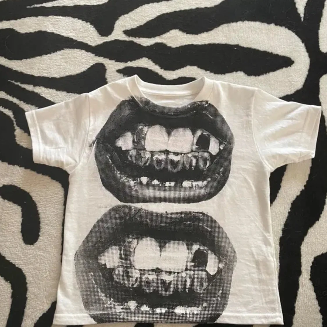 Cool vit t-shirt med ett stort tryck av tänder i svart. Perfekt för en unik och edgy stil. Kortärmad och i bomull för en bekväm passform.