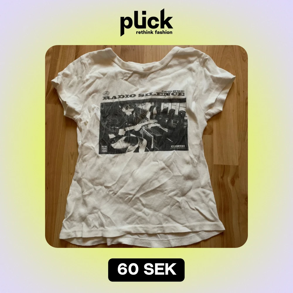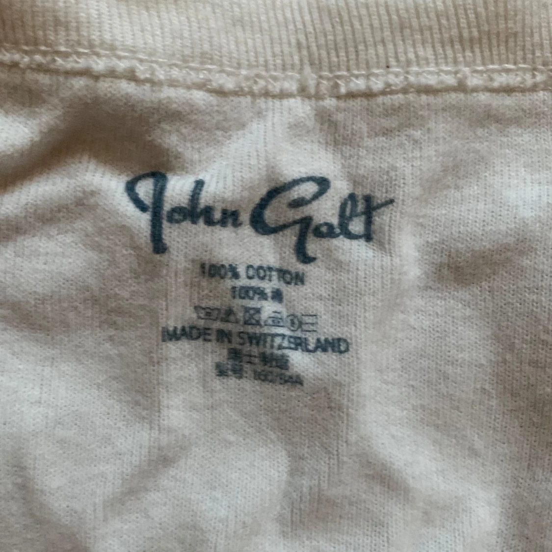 Säljer en vit t-shirt från John Galt i storlek S. Den är gjord av 100% bomull och har ett coolt svart tryck med texten 'Radio Silence'. Perfekt för en avslappnad stil eller konsertkväll. Lite sliten men fortfarande i bra skick!