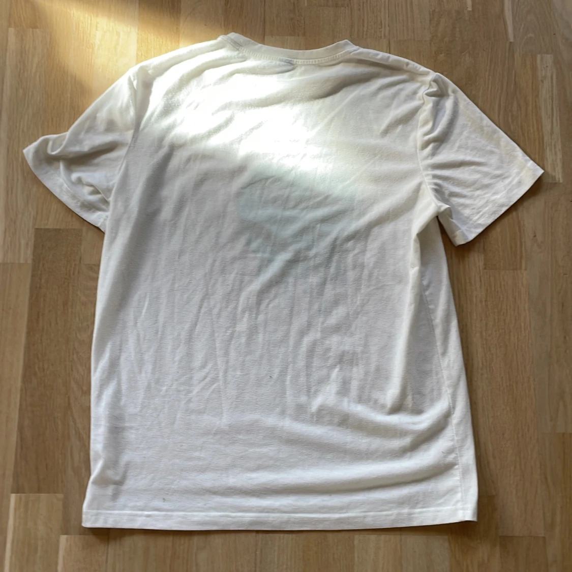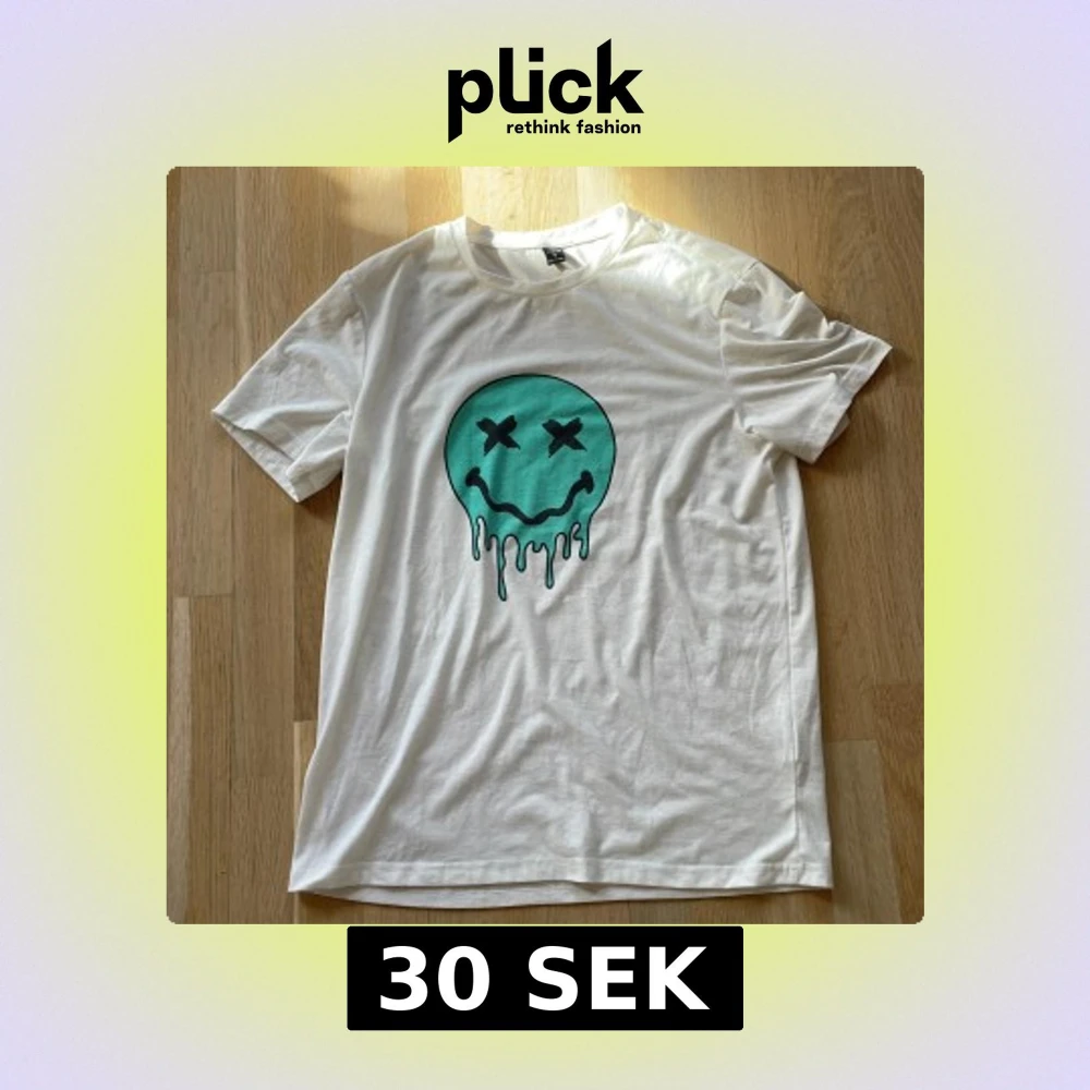 Säljer en vit t-shirt från Shein med ett coolt tryck av ett smältande ansikte i turkos. T-shirten är kortärmad och gjord i en mjuk polyesterblandning. Perfekt för en avslappnad stil!
