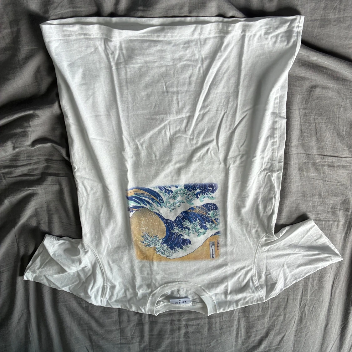 Vit t-shirt med vågtryck storlek S