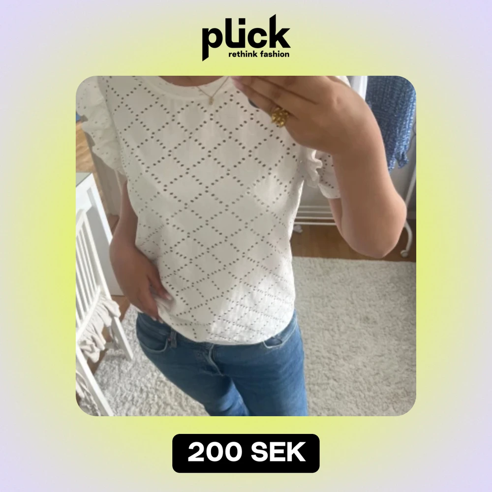 En vit topp/t-shirt med volanger vid ärmarna från Zara!! Säljer pågrund av ingen användning💞💞Lägg prisförslag!!