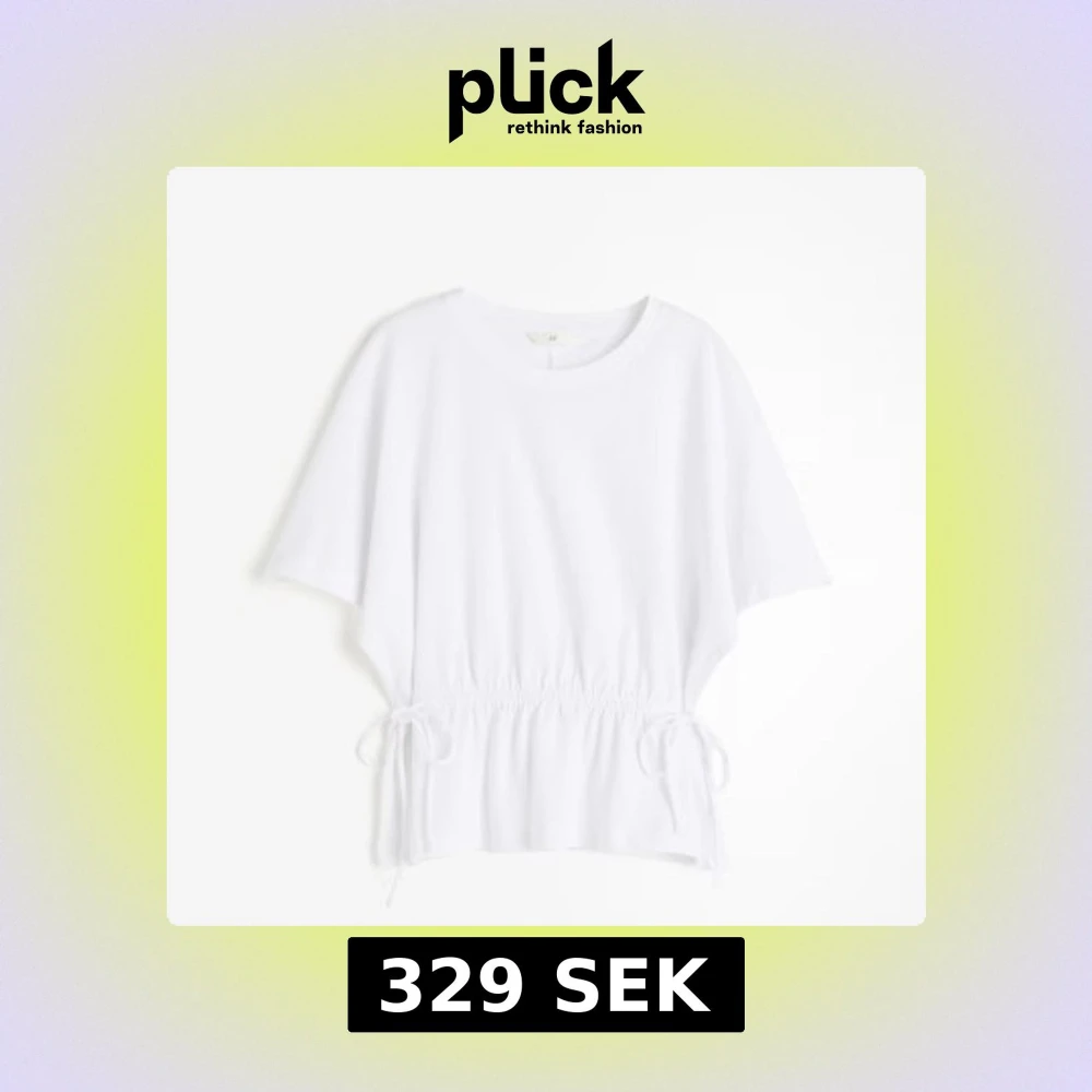 Vit topp från H&M med korta ärmar och rund halsringning. Midjan har snygga knytband på sidorna som ger en cool och avslappnad look. Perfekt till jeans eller kjol för en enkel men trendig outfit.