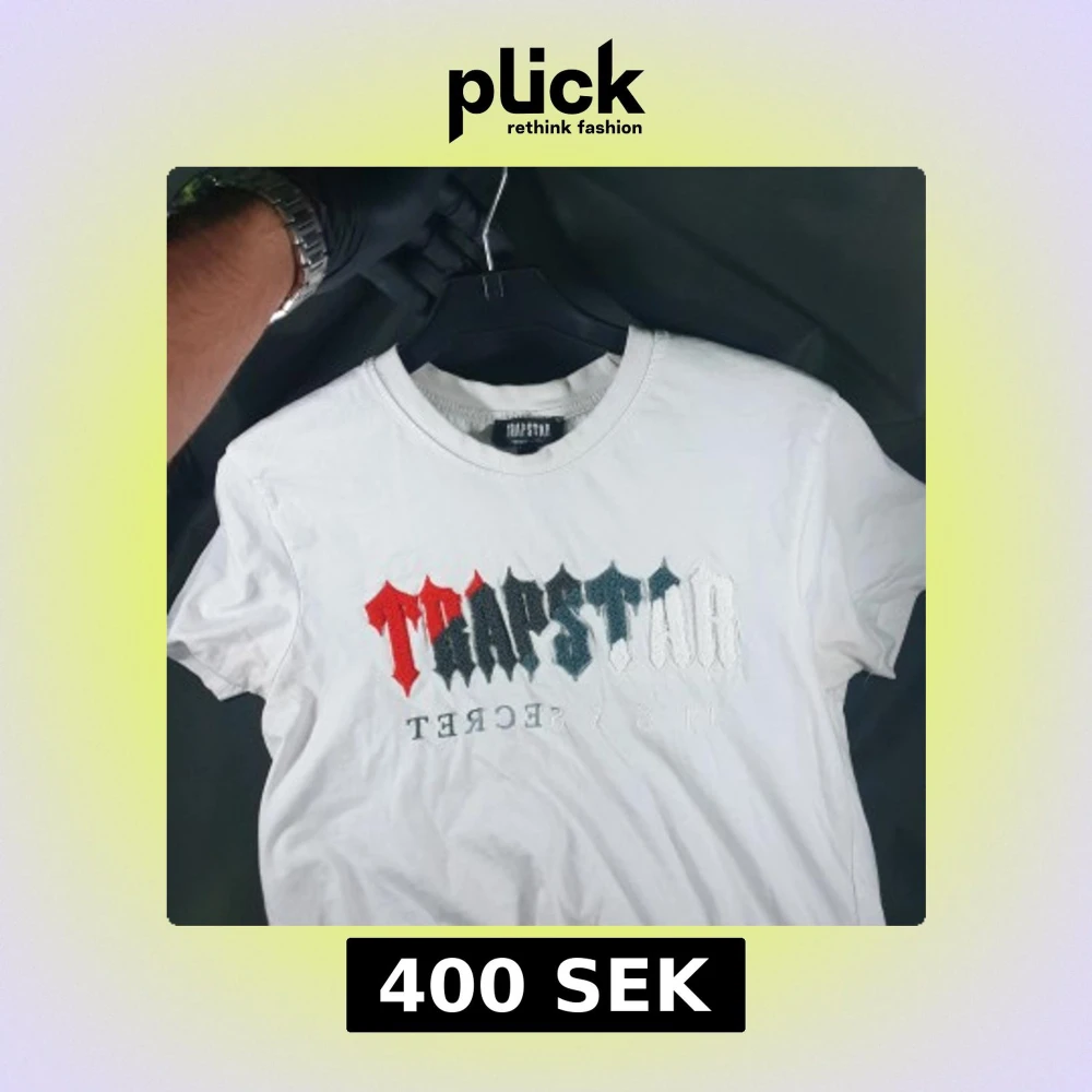Vit t-shirt från Trapstar i bomull med broderad logga i rött, svart, blått och vitt framtill. Klassisk passform med rund hals och korta ärmar. Snygg streetwear-vibe och tydlig branding framtill.