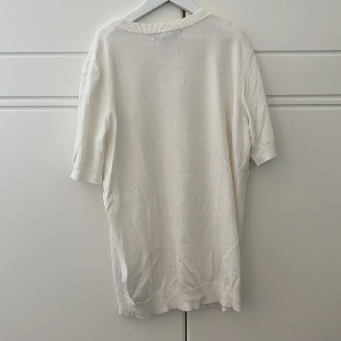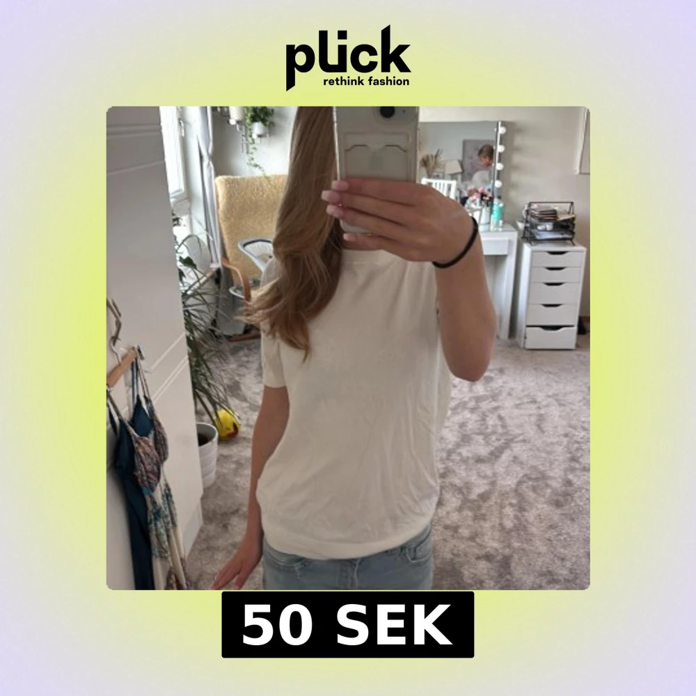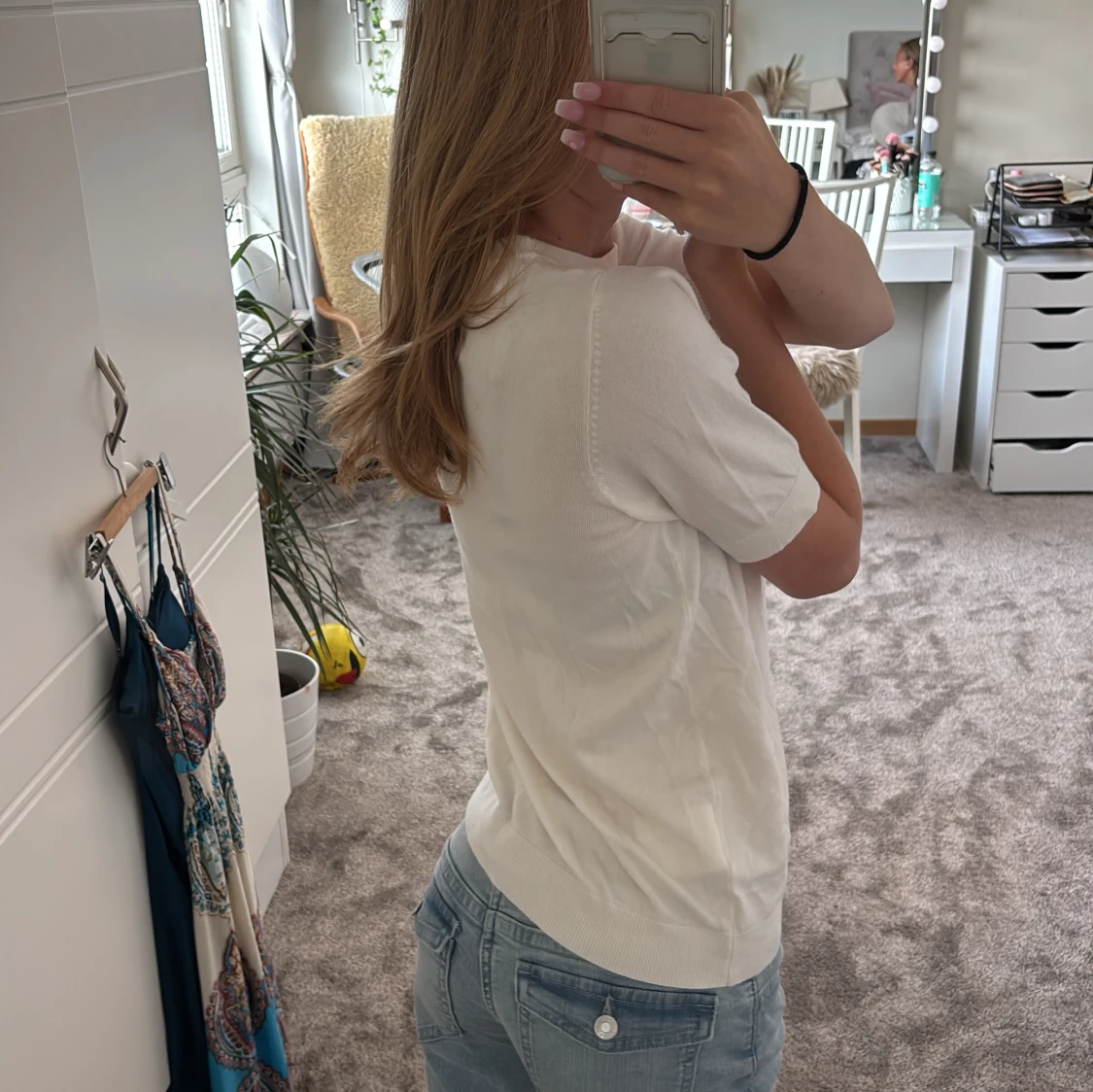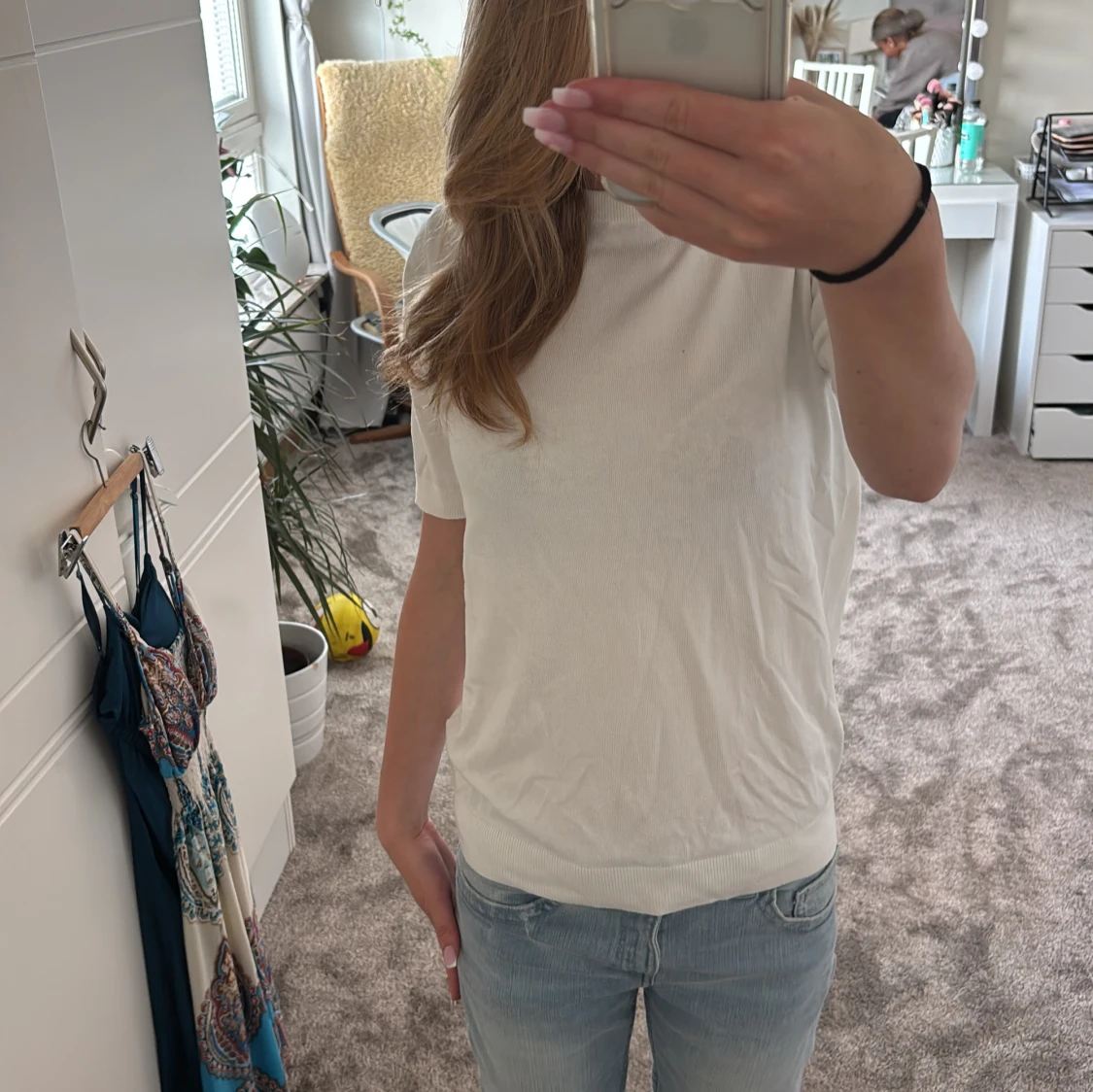 Enkel och stilren vit t-shirt från New yorker med rund halsringning och korta ärmar. Klassisk modell som funkar till allt. Säljer då den är lite för stor till mig, den är storlek S men skulle säga att den passar till storlek M.
