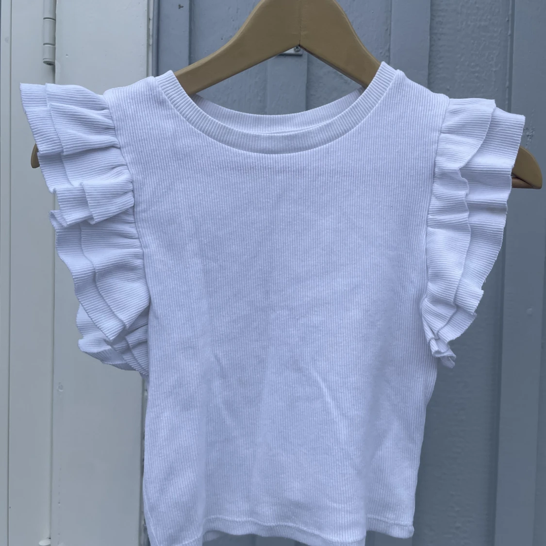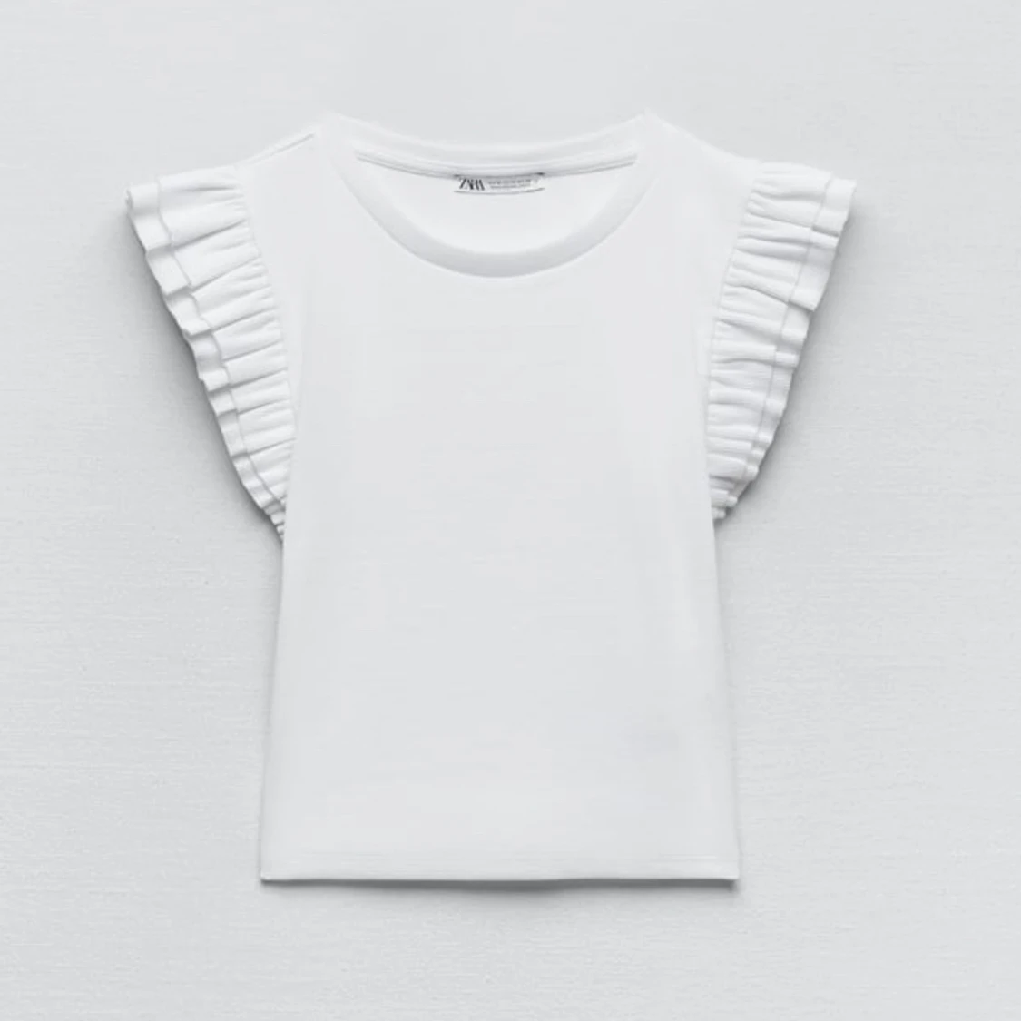 Fin vit T-shirt med volangärmar i storlek S från Zara🤍