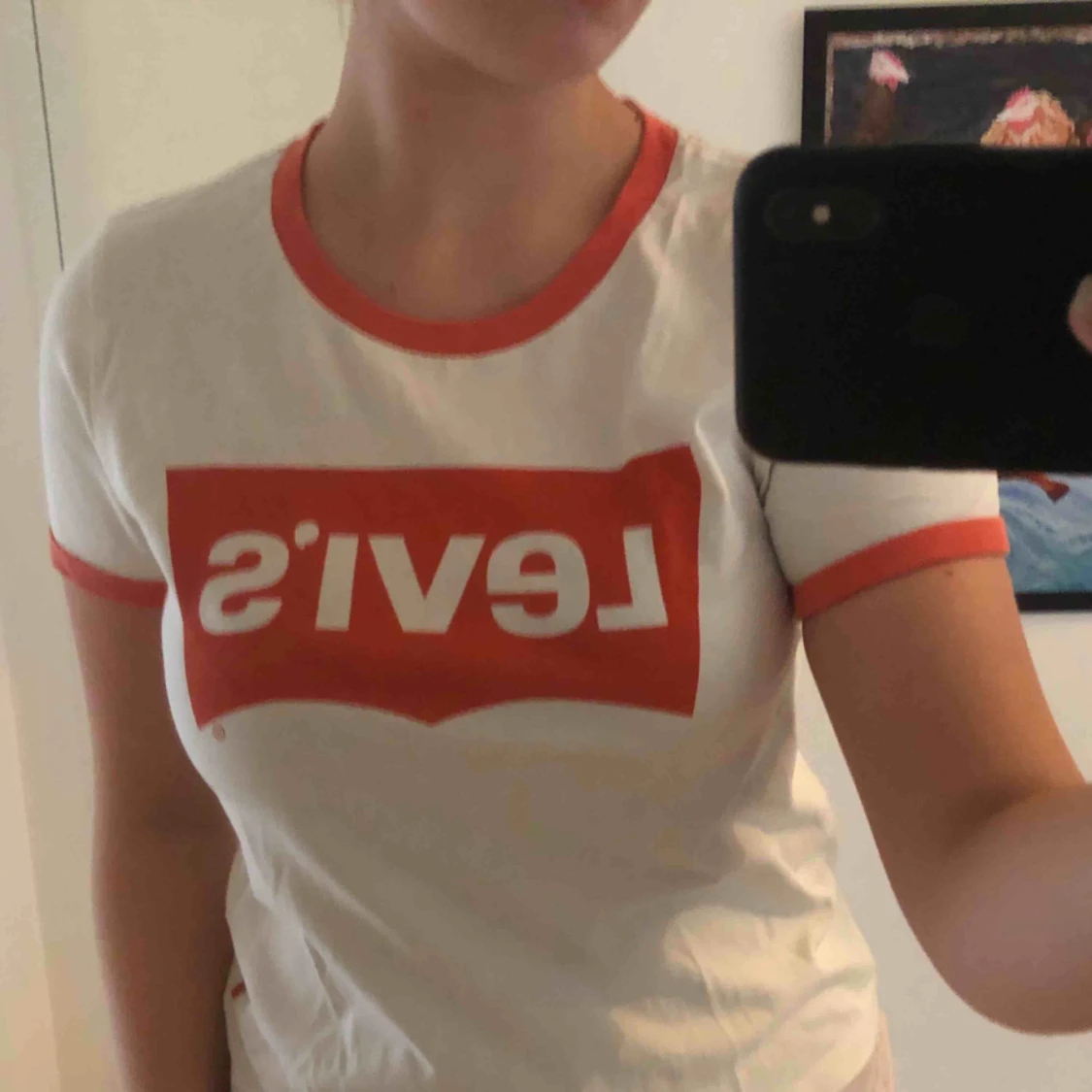 Krämvit t-shirt från Levi’s i storlek M, orange logga. Frakt på 42kr tillkommer🥰