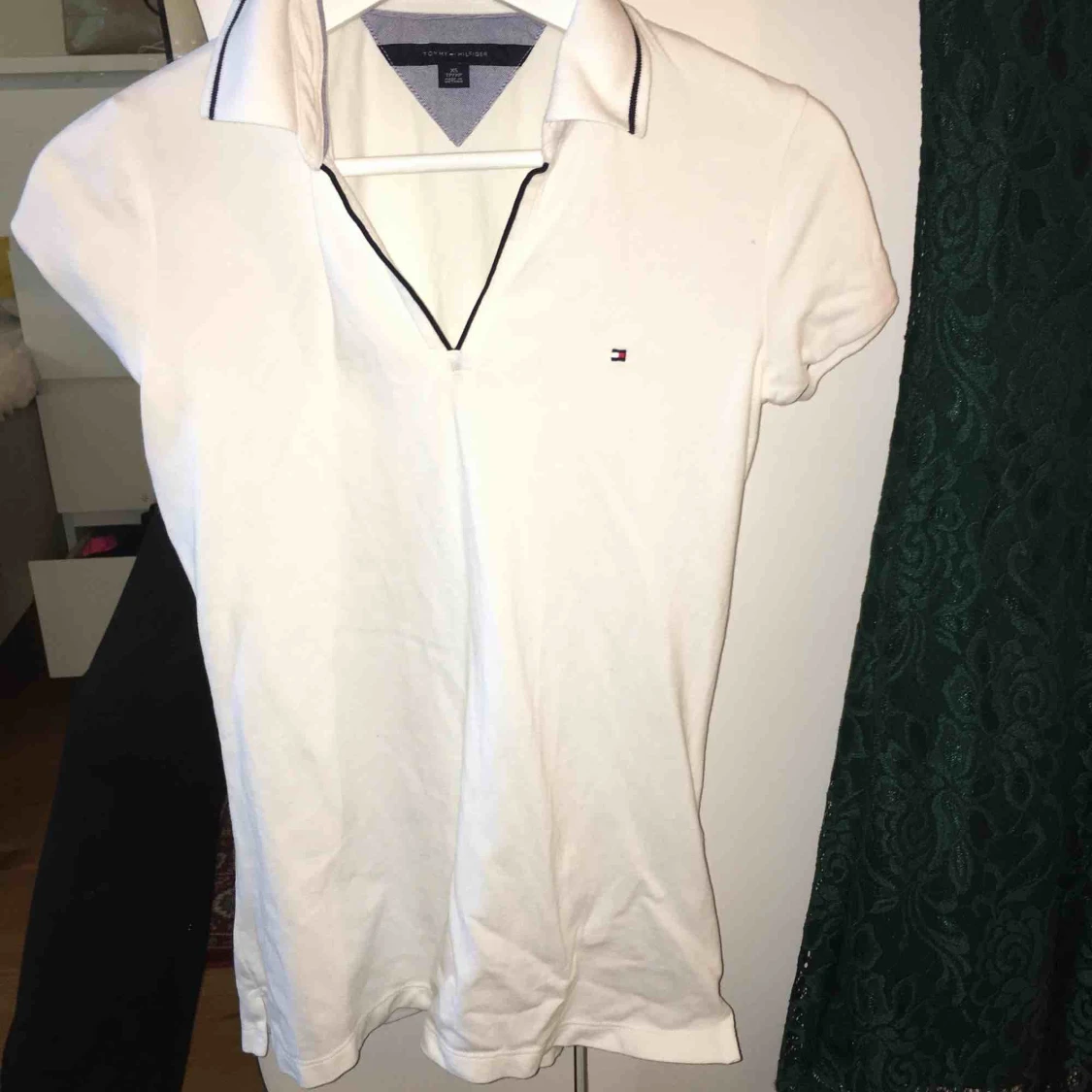 Vit Tommy hilftiger tröja med slits i kanterna nere och helt fläckfri.
