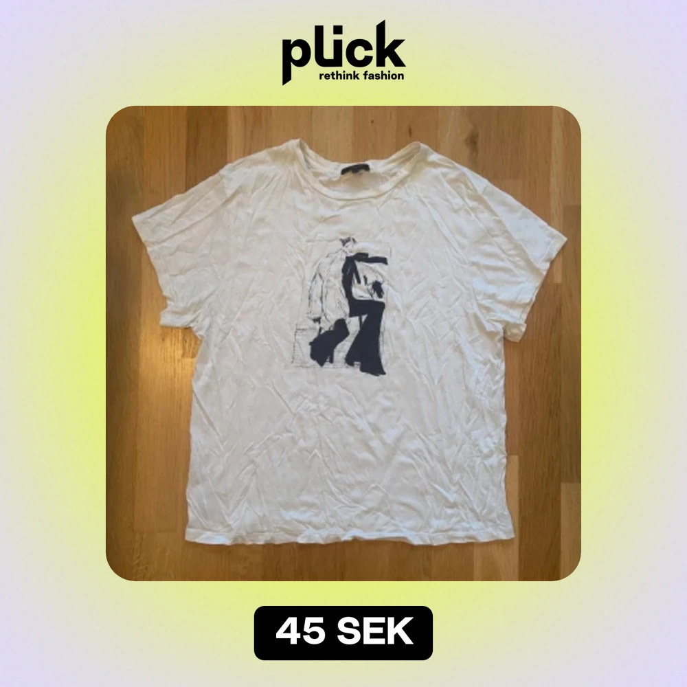 Mjuk vit t-shirt med svart tryck Något liten i storleken