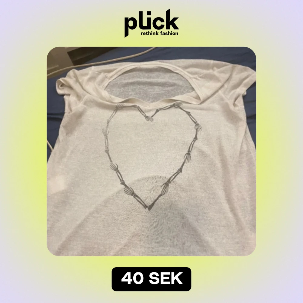 Vit V-ringad t-shirt med hjärta Ganska genomskinlig Inga defekter