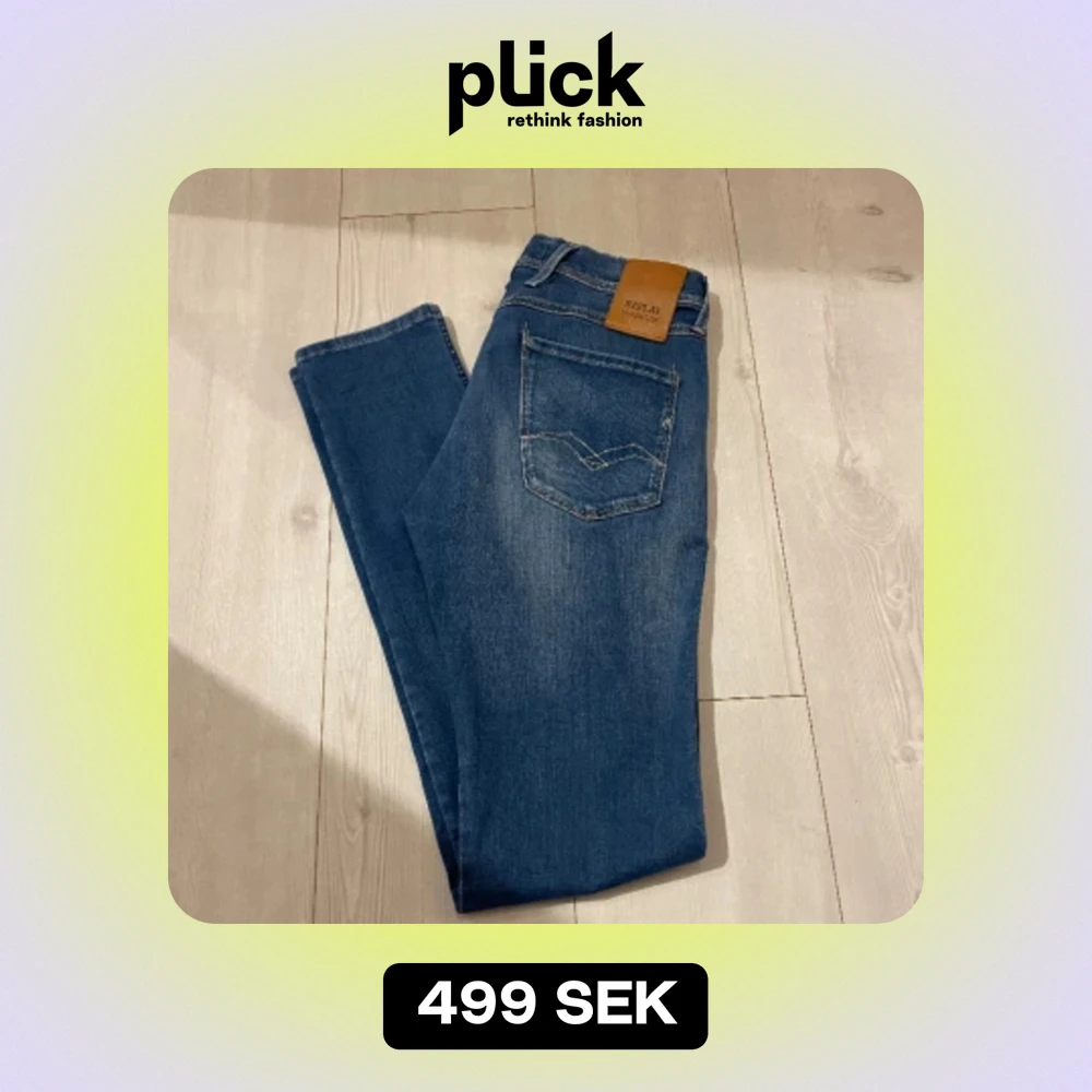 Tja! Säljer nu dessa riktigt schyssta jeans från märket Replay, modellen är anbass (slim fit). Skicket är 9,5/10. Storleken är 30/34 men jag skulle säga att de passar mer 30/32 ish. Hör av dig vid minsta lilla fundering🤩