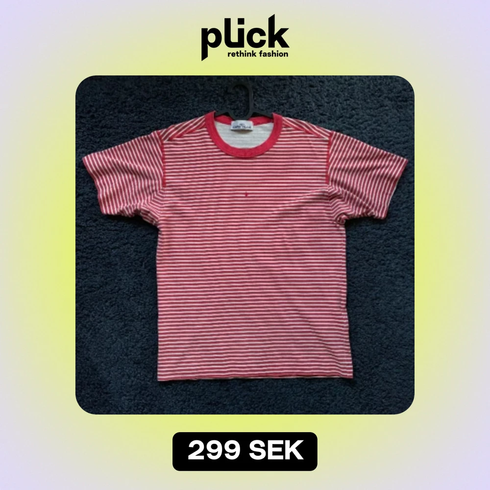 Fräsch röd stone island tröja med logga på bröstet och text på ryggen. Sitter som storlek small, R 3 P från topstoney