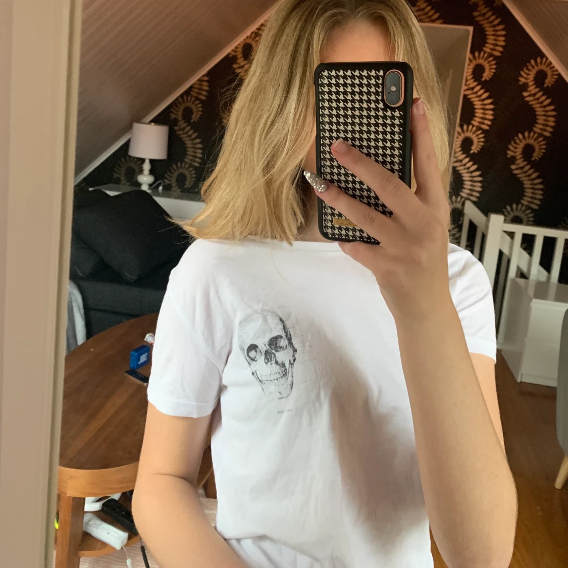 Säljer denna t-shirt med en dödskalle på! Skitsnygg men tyvärr för liten för mig. Storlek xs💞 köparen står för frakten och pris kan diskuteras!