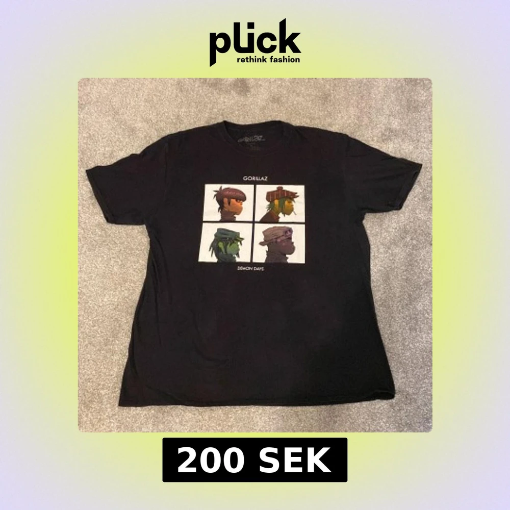 Svart Gorillaz t-shirt. Perfekt för fans av bandet.