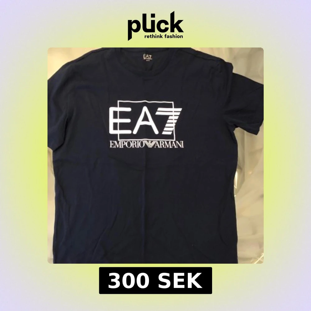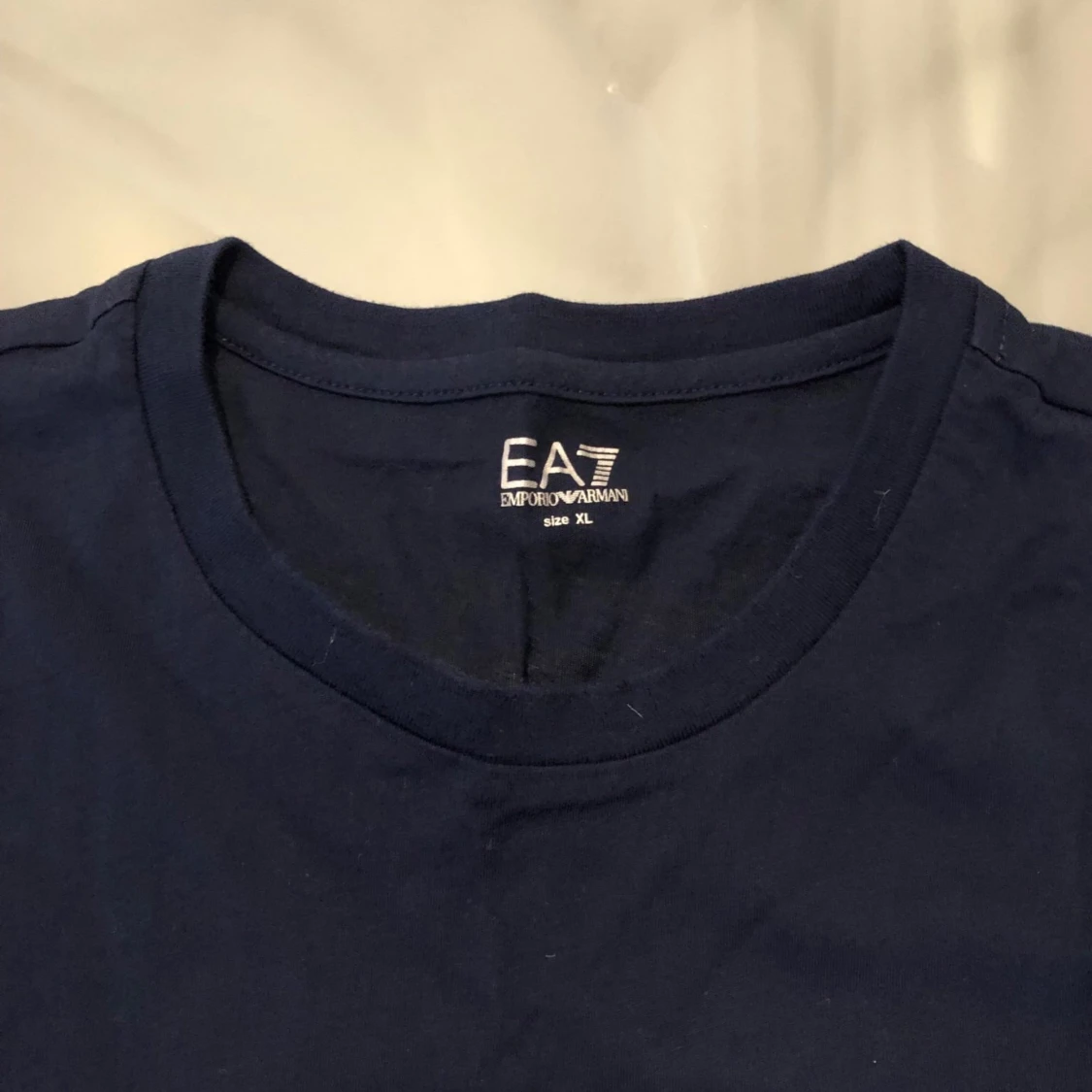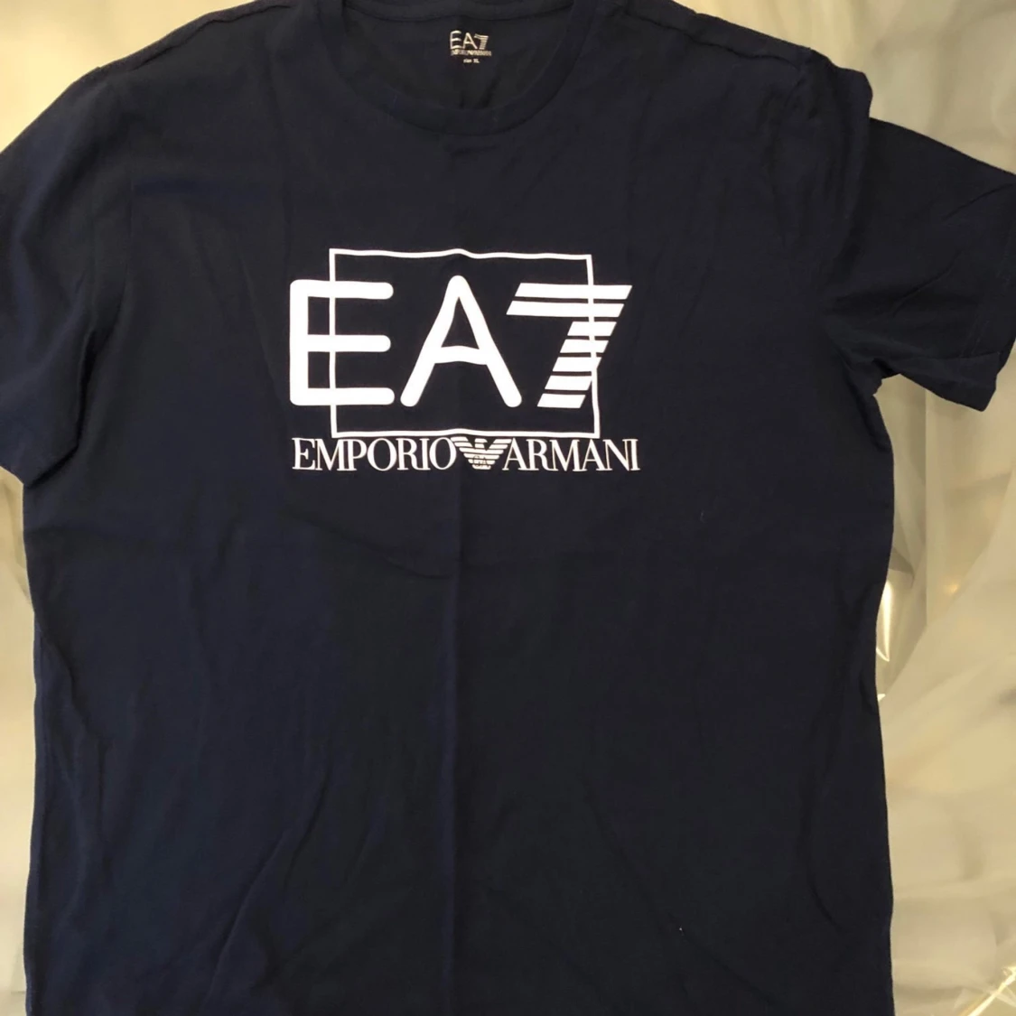 Snygg mörkblå t-shirt från Emporio Armani med det ikoniska EA7-logotypen tryckt i vitt på framsidan. Perfekt för en stilren och avslappnad look.