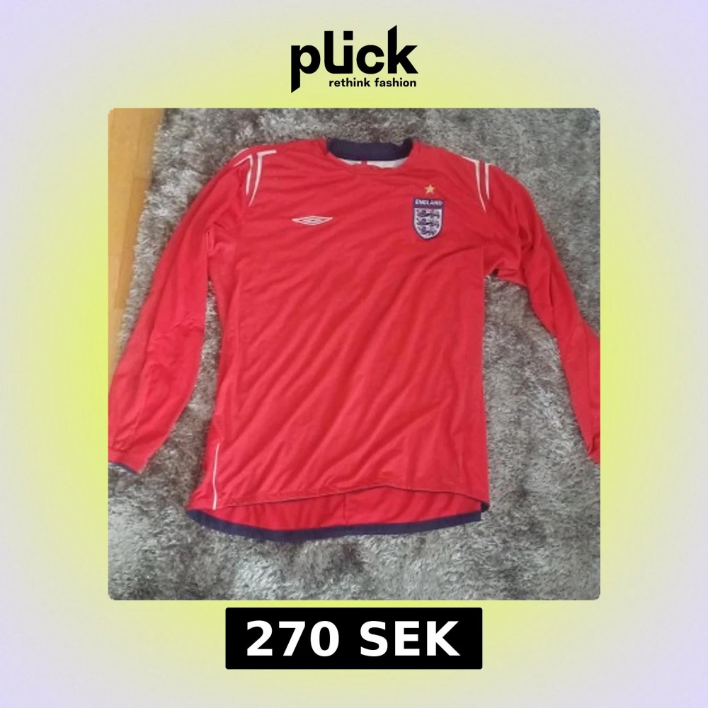 Röd långärmad England fotbollströja från Umbro med broderat landslagsmärke och guldstjärna på bröstet. Tröjan har vita detaljer på axlarna och marinblå kant vid hals och ärmslut. Tillverkad i lätt och ventilerande material, perfekt för match eller träning.