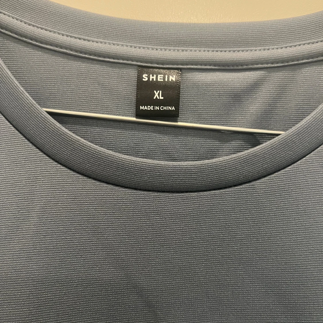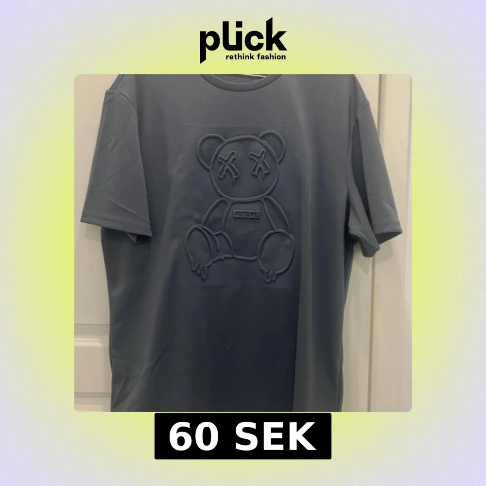 Dammblå t-shirt från SHEIN i storlek XL med ett stort 3D-tryck av en nalle på bröstet och texten 'FUTURE'. T-shirten har rund hals och korta ärmar. Materialet känns mjukt och stretchigt, perfekt för en chill och trendig look.