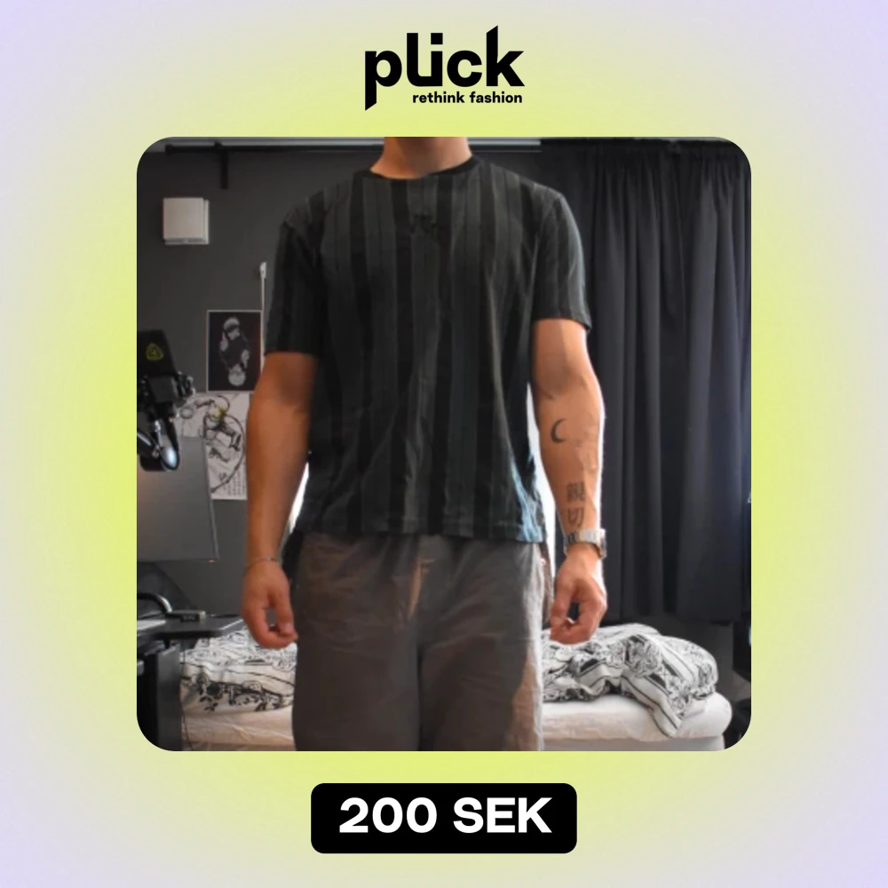 Grön och svart randig t-shirt i storlek XL (passar L och M) suuper skönt material. Jag är 185cm 90kg för referens