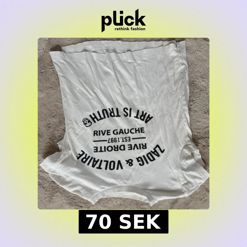 Vit t-shirt med svart tryck framtill där det står 'Rive Gauche', 'Art is Truth', 'Zadig & Voltaire' och 'Est. 1997'. Klassisk rund halsringning och korta ärmar. Skön och avslappnad passform, perfekt till jeans eller shorts.