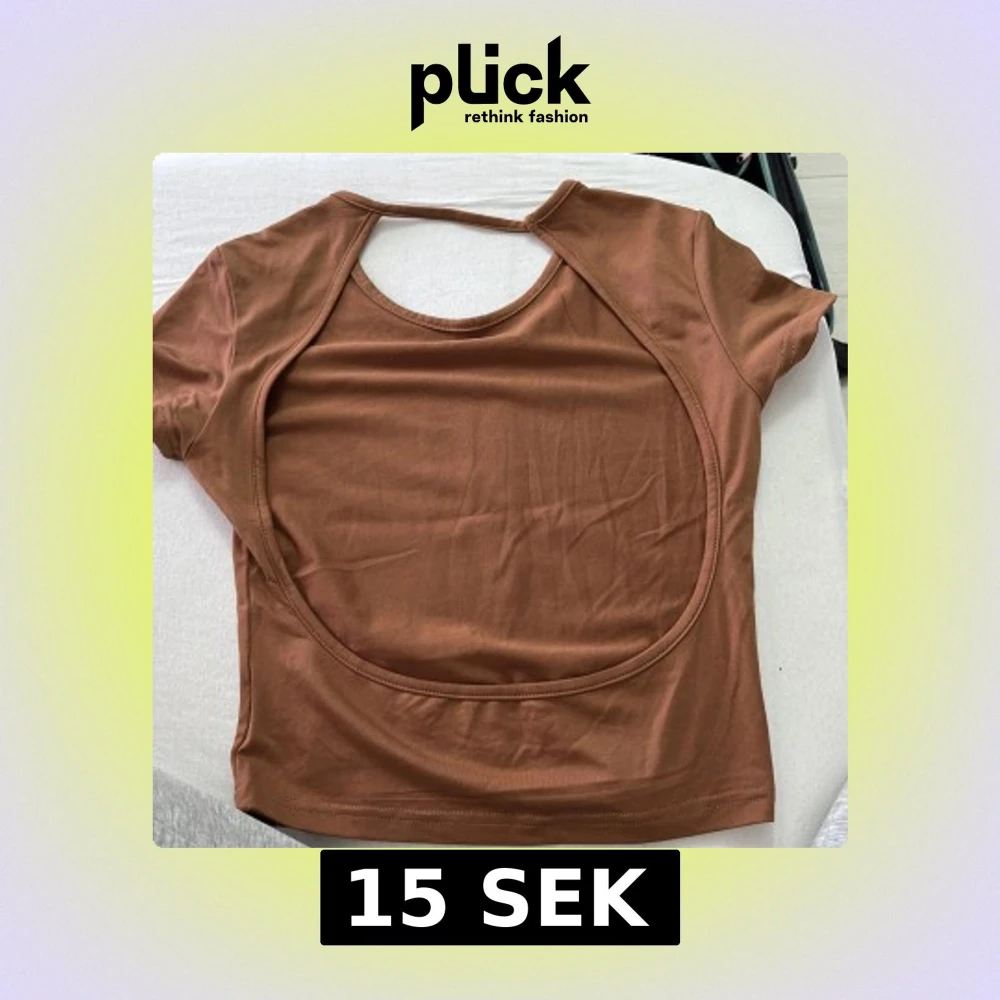 Snygg brun t-shirt med korta ärmar och en stor, rund öppning i ryggen som ger en cool och unik look. Materialet känns mjukt och stretchigt, perfekt för dig som gillar att sticka ut. Passformen är normal och färgen är varm brun.