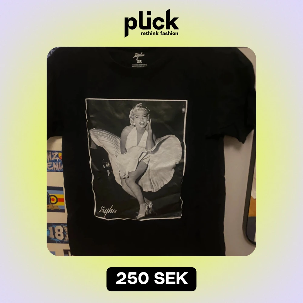 Säljer en svart t-shirt från Jayhu i storlek XS. Den har ett coolt tryck av en ikonisk bild på framsidan. Perfekt för en avslappnad stil eller att bära på fest. T-shirten är i bra skick och gjord av mjukt material.