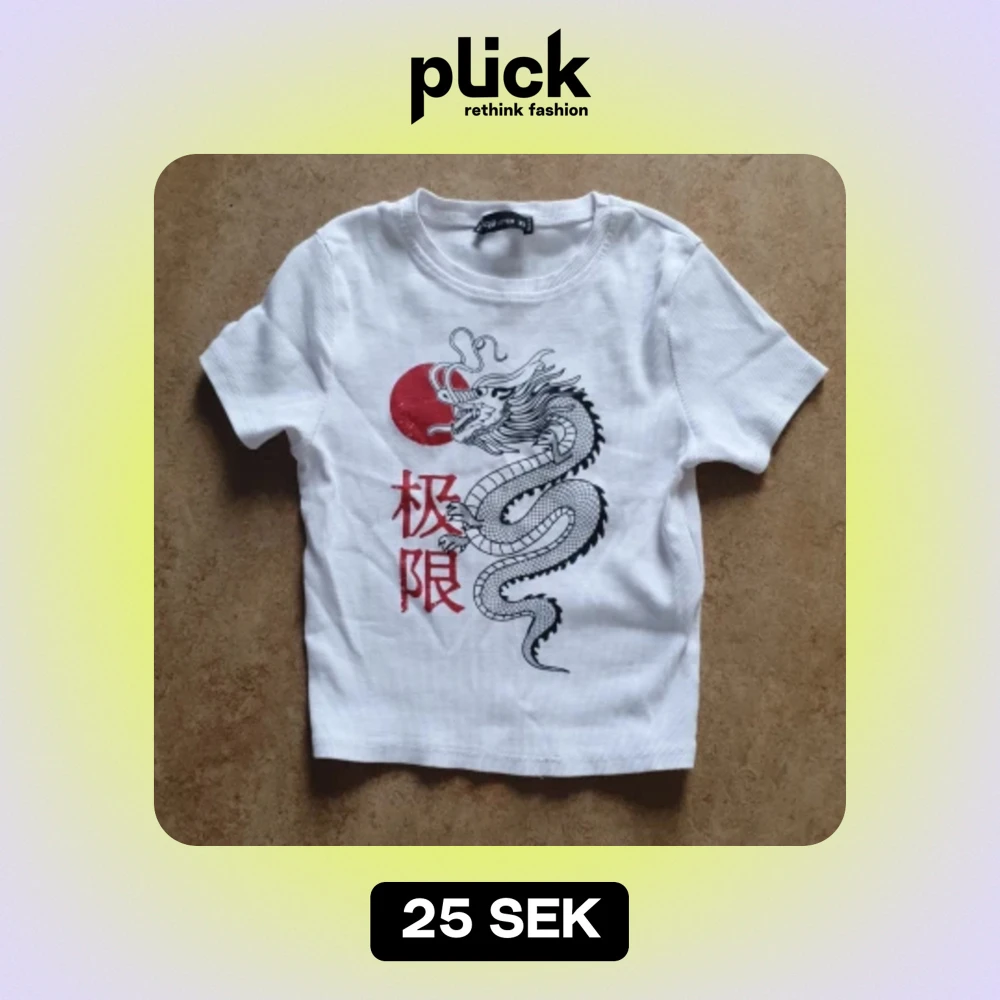 Kort t-shirt. Storlek XS. Från New Yorker. Kinesiskt tryck med drake och tecken.