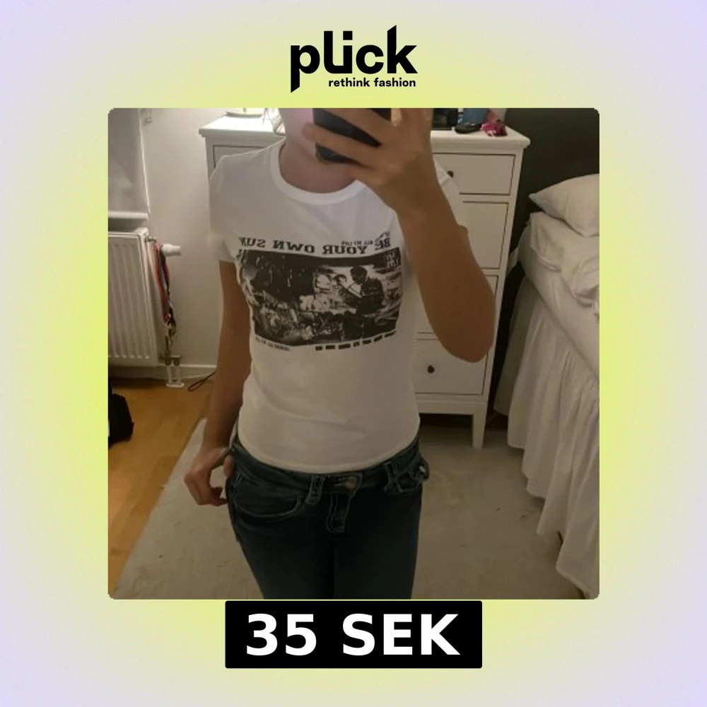 Säljer en vit t-shirt med svart tryck och texten 'BE YOUR OWN SUN' på bröstet. Mjukt och stretchigt material 💗