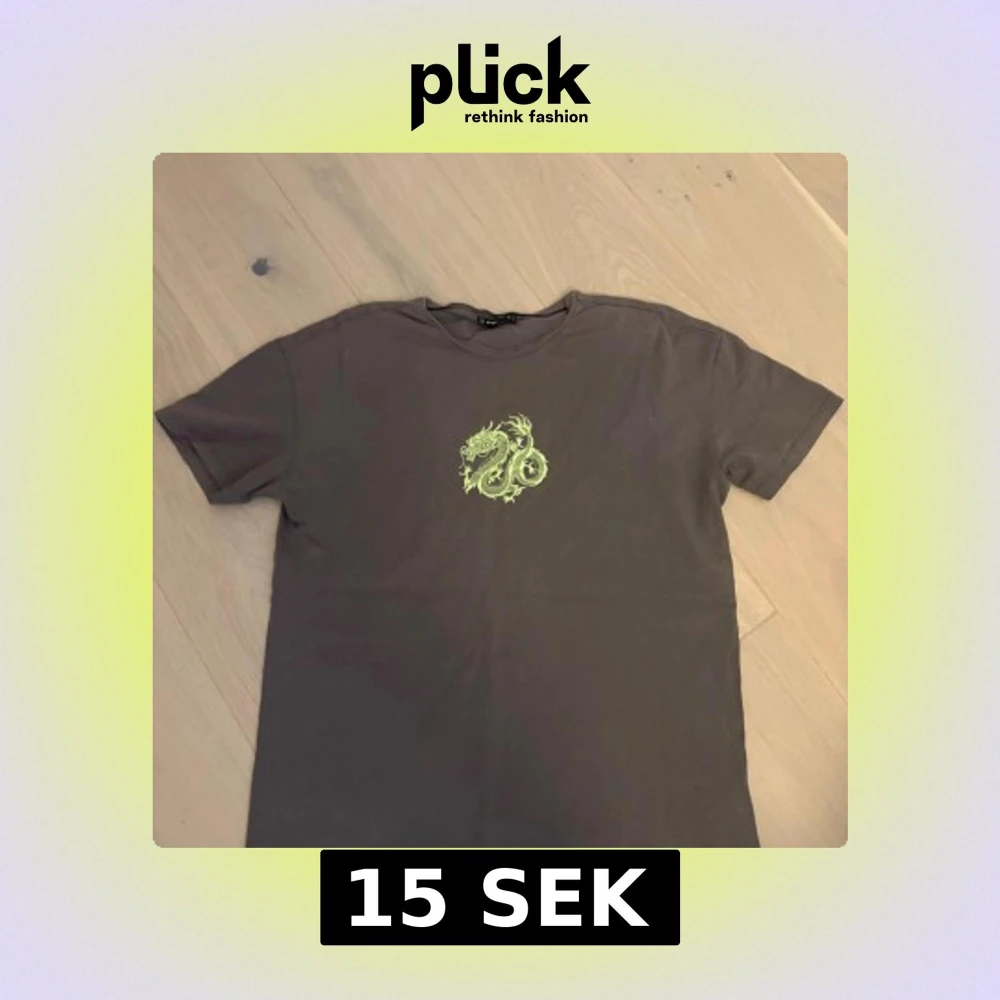 Cool grå t-shirt med ett stort neonfärgat draktryck på bröstet. Modellen är klassisk med rund hals och korta ärmar. Materialet är mjuk bomull som känns skönt mot huden. Perfekt för dig som gillar streetstyle och asiatiska influenser.