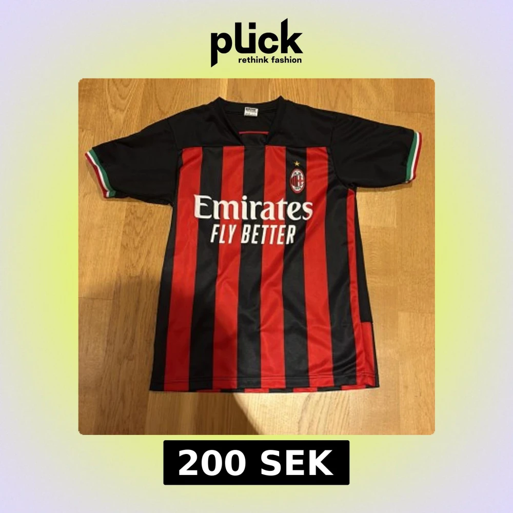 AC Milan fotbollströja med R. Leão och nummer 17 på ryggen. Klassisk röd och svart vertikalrandig design, klubbmärke på bröstet och Emirates Fly Better-tryck. Kortärmad med italienska flaggdetaljer på ärmsluten. Tillverkad i lätt och ventilerande material.