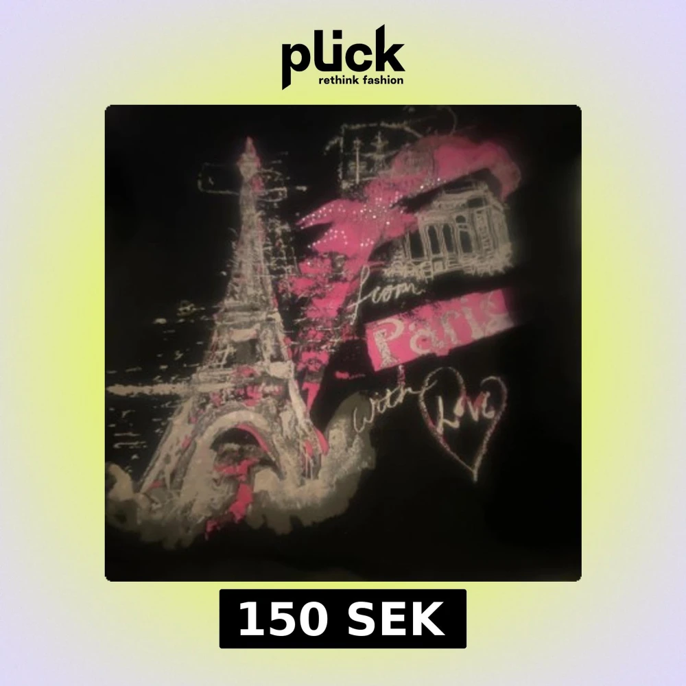 Svart t-shirt med coolt Paris-tryck, Eiffeltornet och texten 'From Paris with Love' i vitt och rosa. Snygga detaljer med glitter och hjärta. Perfekt för dig som gillar streetstyle och vill sticka ut med en unik look.