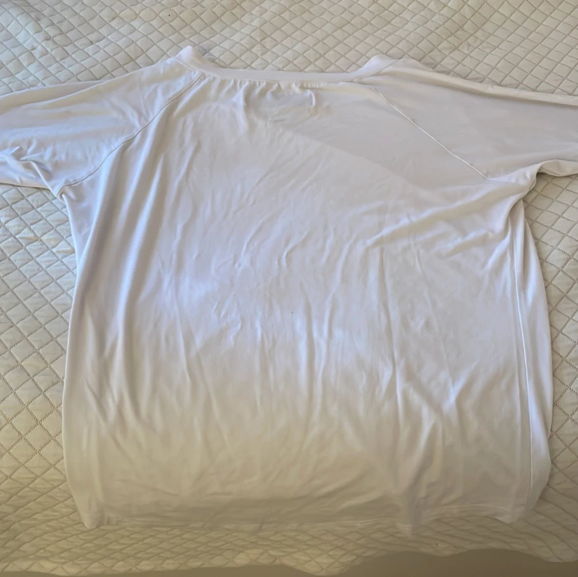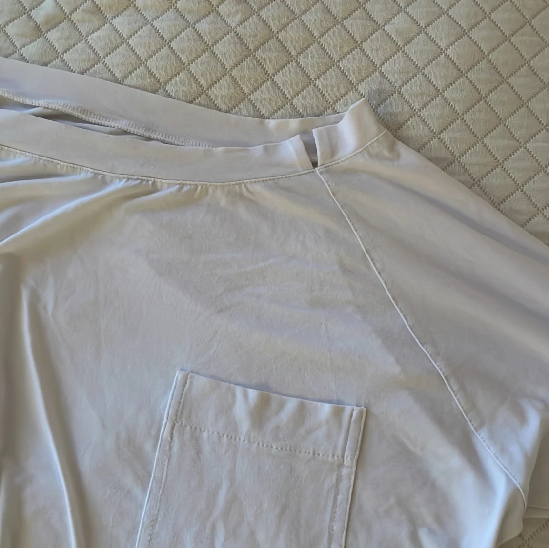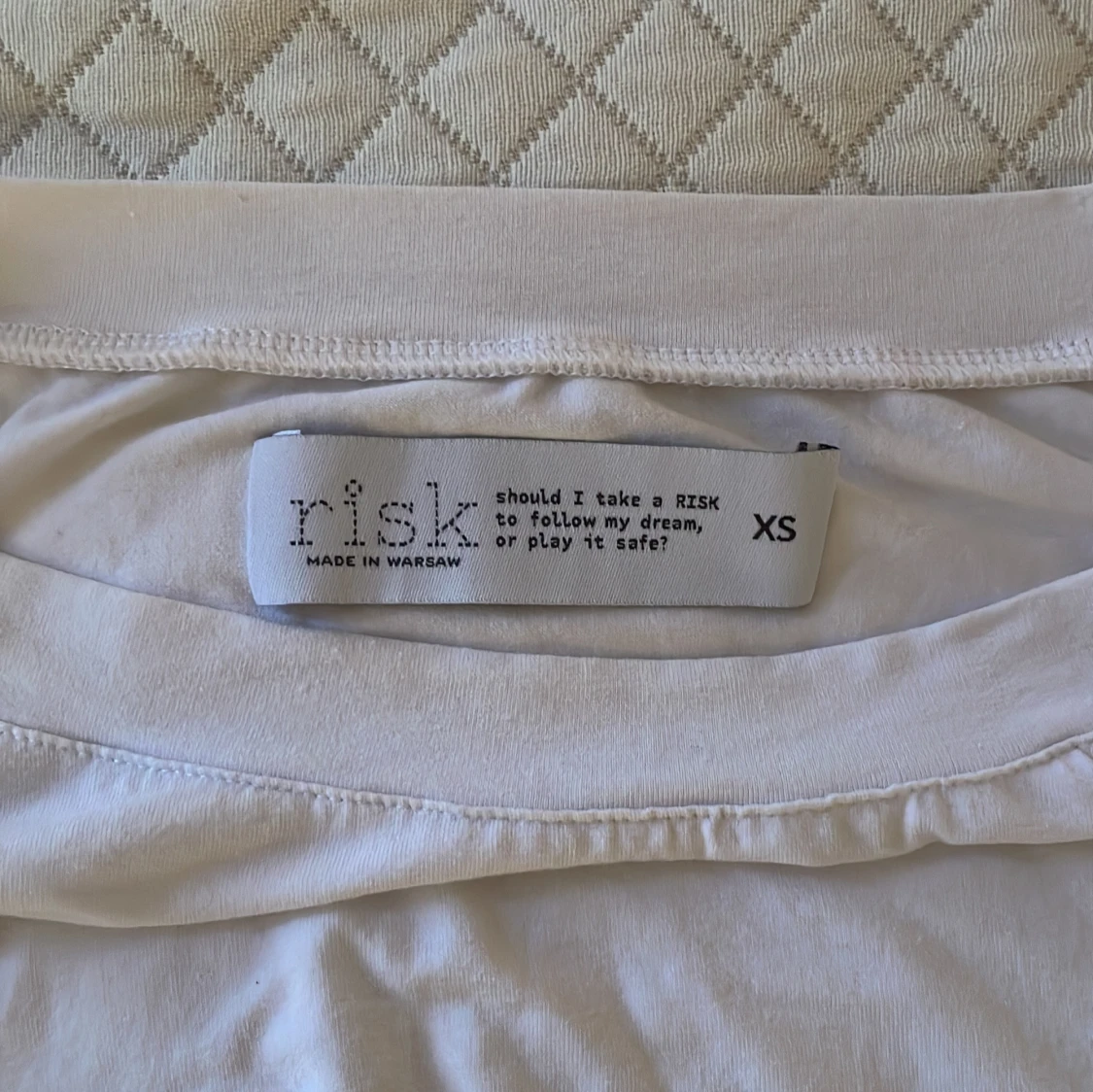 Vit långärmad t-shirt från Risk, med rund hals och en enkel bröstficka på vänster sida. Modellen är loose fit och tillverkad i mjuk bomull som känns skön mot huden.