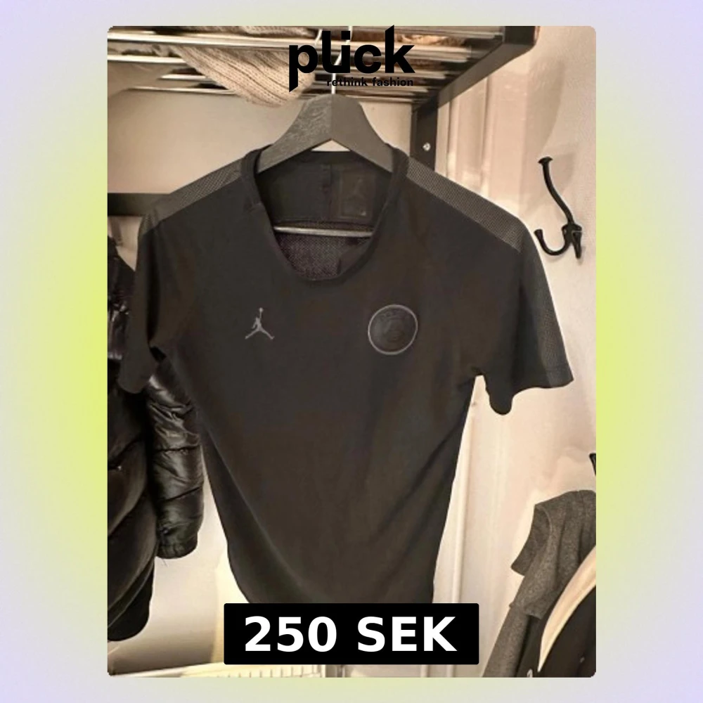 Snygg svart t-shirt från Jordan x PSG med diskret logga på bröstet och mesh-detaljer på axlarna. Perfekt för dig som gillar sportig stil och vill ha något bekvämt och stilrent. Klassisk passform och rund hals. Passar XS
