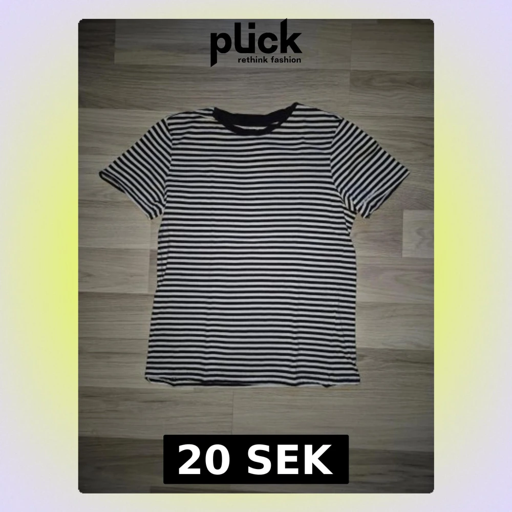 Snygg svartvit randig t-shirt med korta ärmar och rund hals. Perfekt basplagg som passar till det mesta. Tillverkad i mjuk bomull för skön känsla hela dagen. Den har 2 små hål i ryggen, se bild.