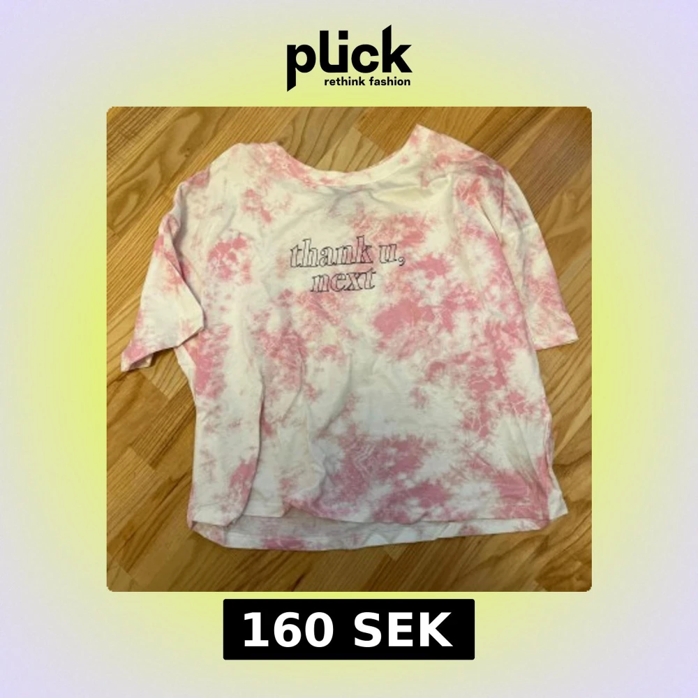 Rosa och vit t-shirt med texten 'thank u, next' tryckt på framsidan🌸🌸🌸 Ariana grande