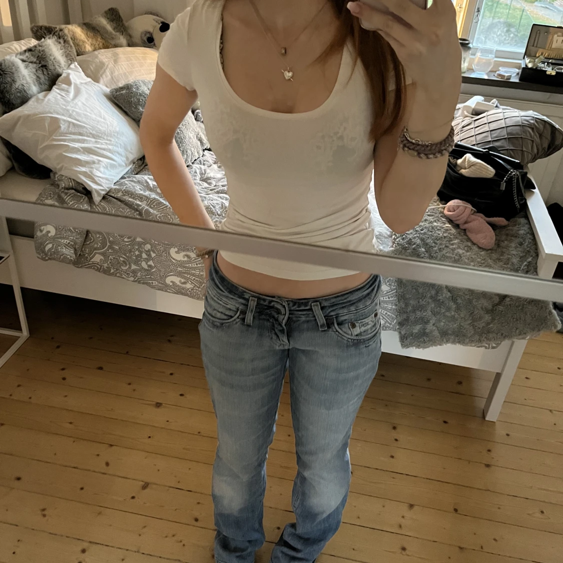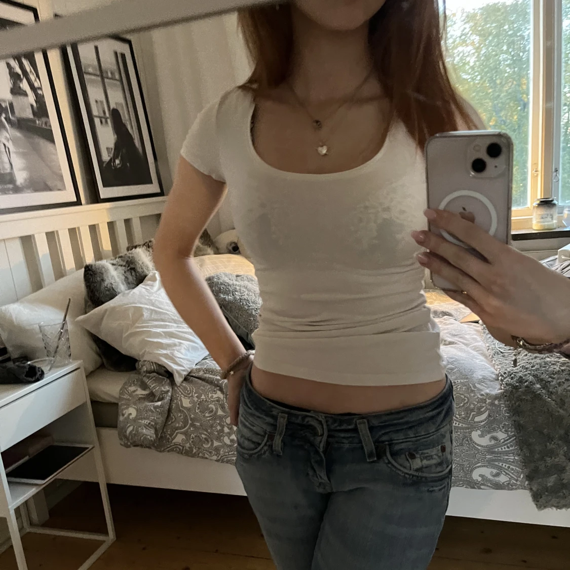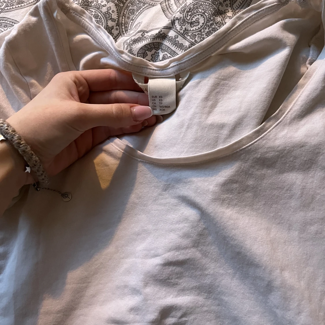 Vit u-ringad T-shirt från Hm. Stl xs, använd fåtal gånger🩷 Dm för fler bilder.