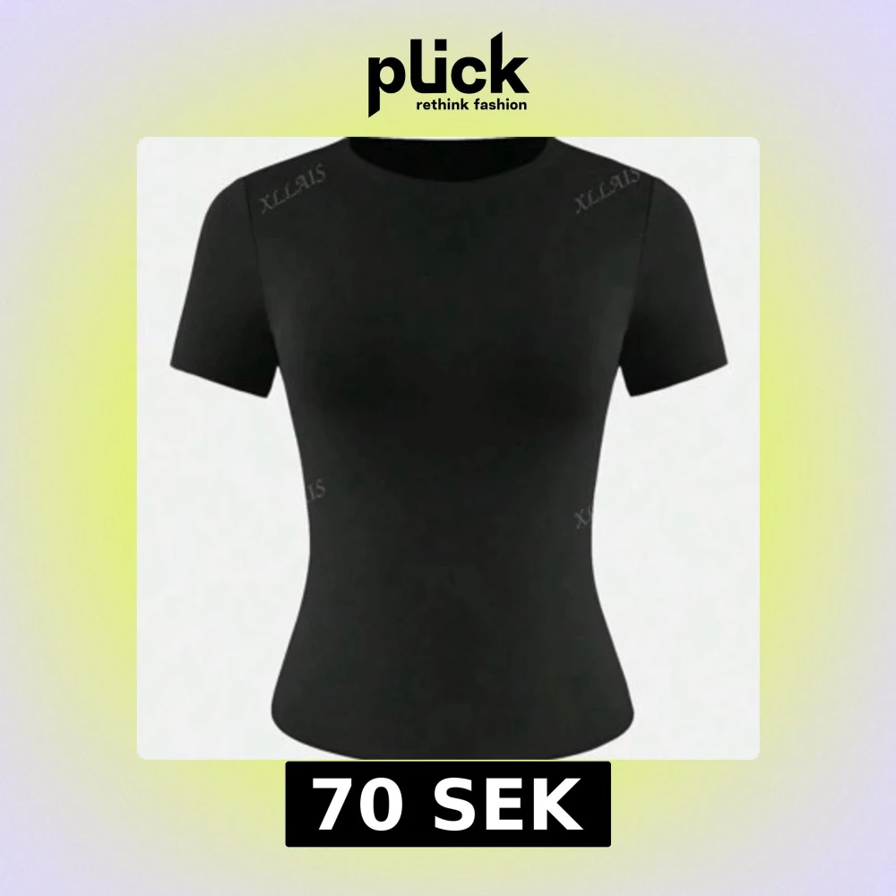 Enkel och stilren svart t-shirt från Shein med tight passform och korta ärmar. Perfekt basplagg med rund halsringning, tillverkad i mjukt material som sitter snyggt på kroppen.
