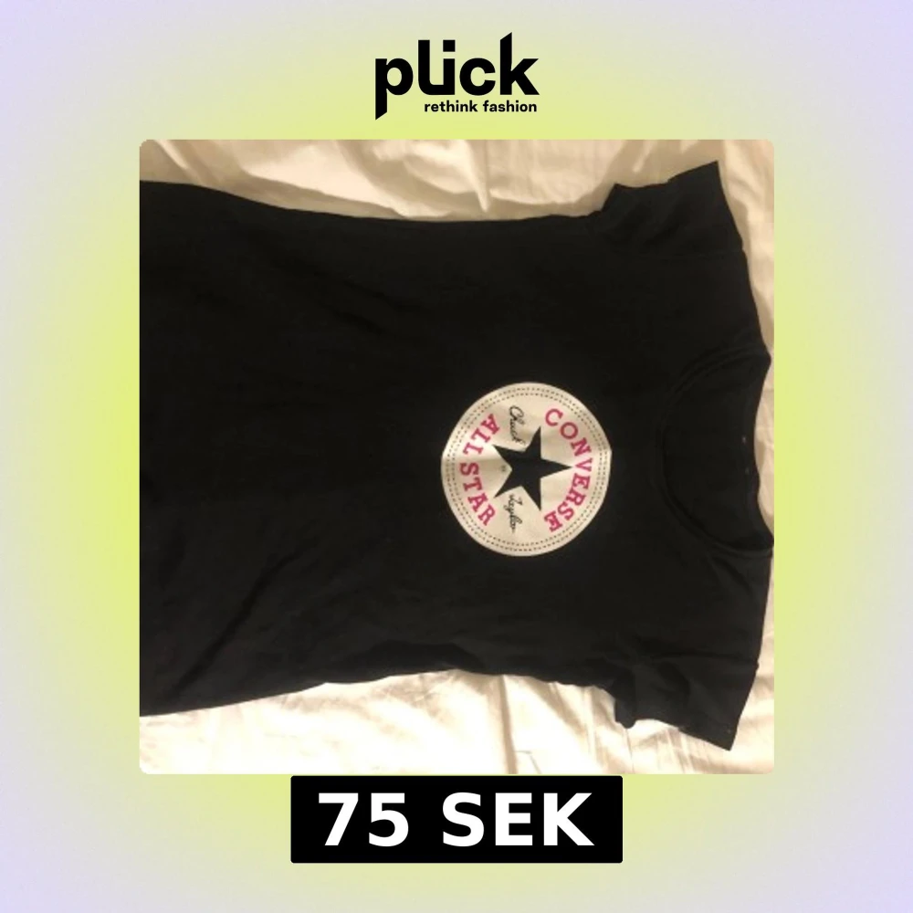 Snygg svart T-shirt med det klassiska Converse All Star-trycket i vitt och rosa på bröstet. Tillverkad av mjuk bomull från Atlant, perfekt för en avslappnad stil.