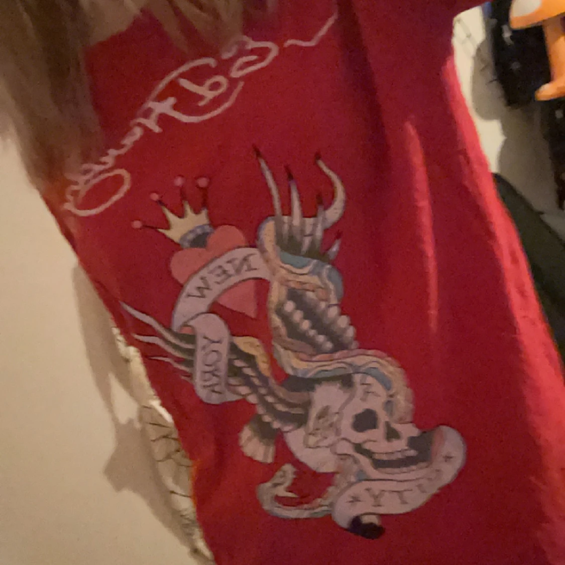 As snygg ed hardy tröja använd ett par få gånger köpt innan här på Plick men säljer pga att det inte kommer till användning några små defekter men inget som syns