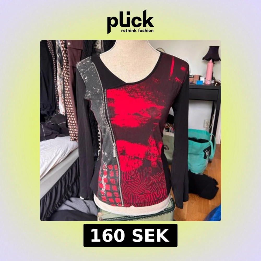 Unik långärmad tröja från Signature med coolt röd och svart abstrakt mönster framtill. Tröjan har sned dragkedja som detalj och är figurnära i modellen. Materialet känns som bomull och polyester, perfekt för dig som gillar edgy stil.