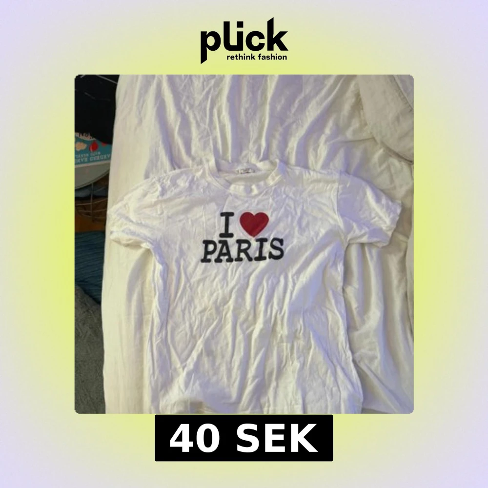 Vit t-shirt från Alam Fashion Premium med det klassiska trycket 'I ❤️ PARIS' på bröstet. T-shirten har rund halsringning och är tillverkad i 100% bomull, vilket gör den mjuk och skön att bära. Pris går alltid att diskutera❣️