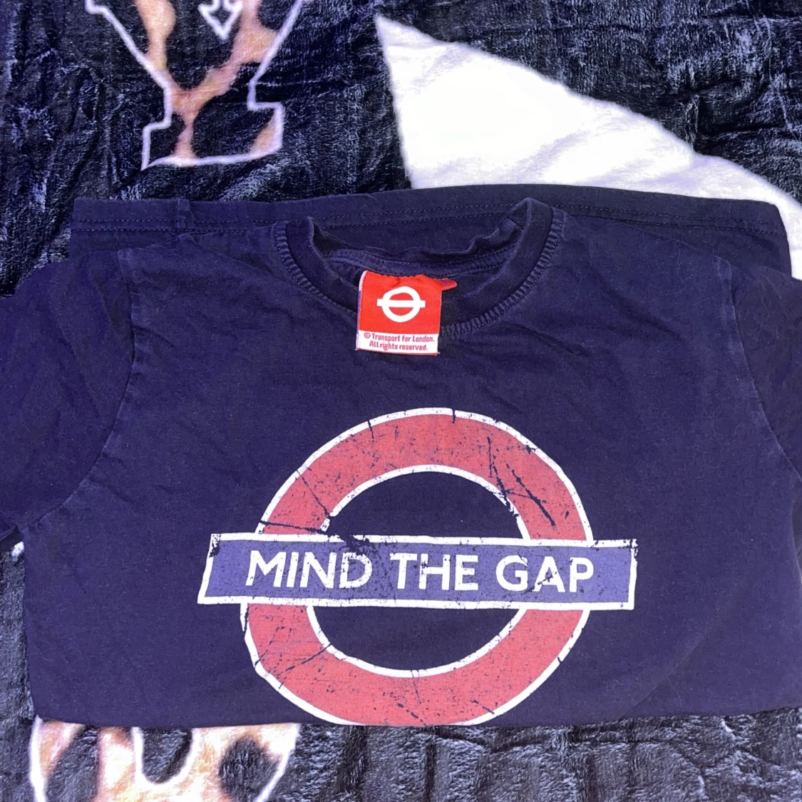 Cool navyblå t-shirt från Transport for London med det ikoniska 'Mind the Gap'-trycket i rött och vitt på bröstet. Klassisk passform och rund hals. Perfekt för dig som gillar London vibes och streetstyle.