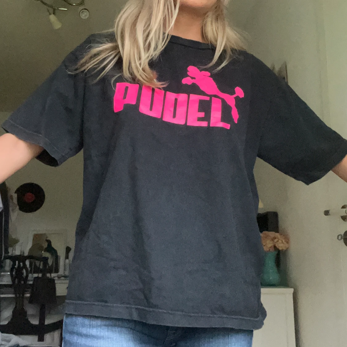 Puma-inspirerad t-shirt. Skulle uppskatta storleken till en L. :)