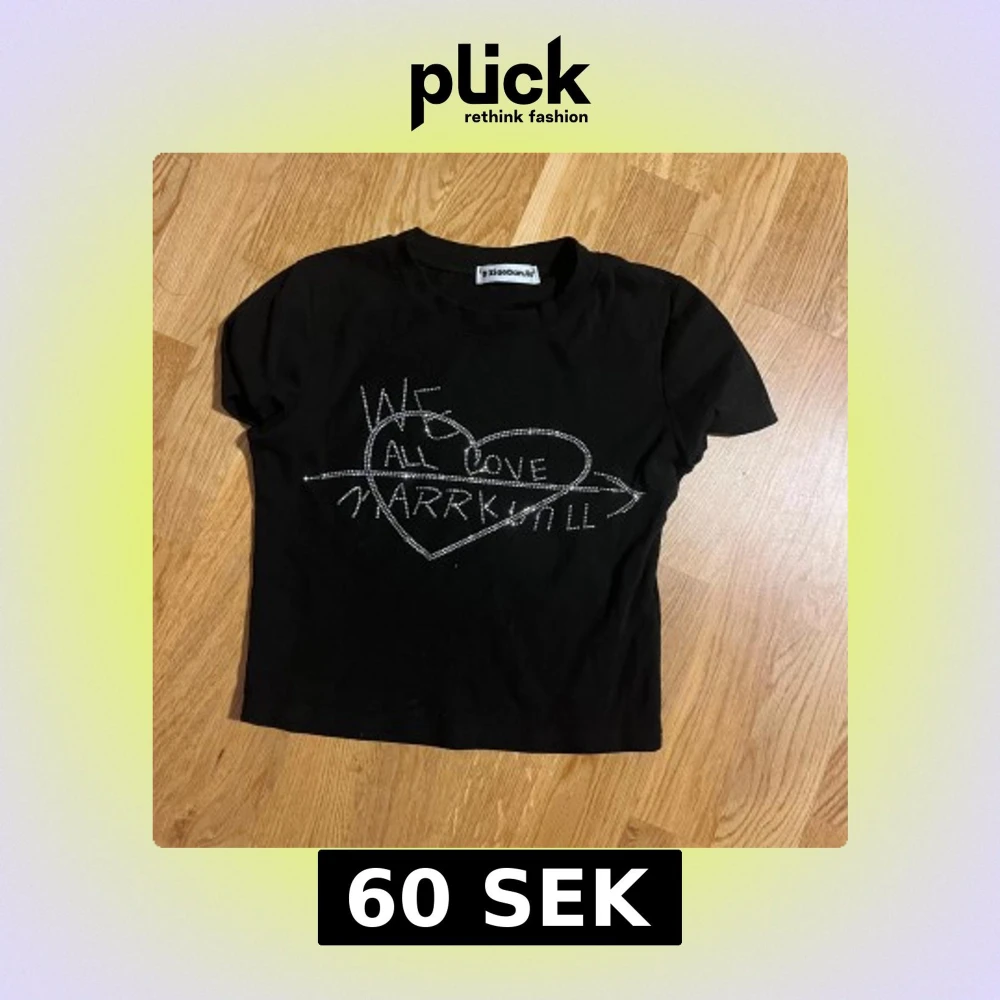 Svart t-shirt från XiaoDanJie med korta ärmar och coolt strassmönster framtill som bildar ett hjärta. Skön passform och perfekt till jeans eller kjol. Materialet känns mjukt och stretchigt. y2k topp men diamant detaljer på Använd fåtal gånger, mycket bra material och skick