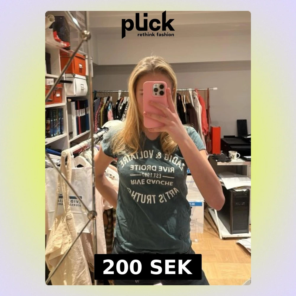 Snygg grön t-shirt från Zadig med vit texttryck framtill. T-shirten har rund halsringning och korta ärmar. Perfekt för en avslappnad och trendig stil.