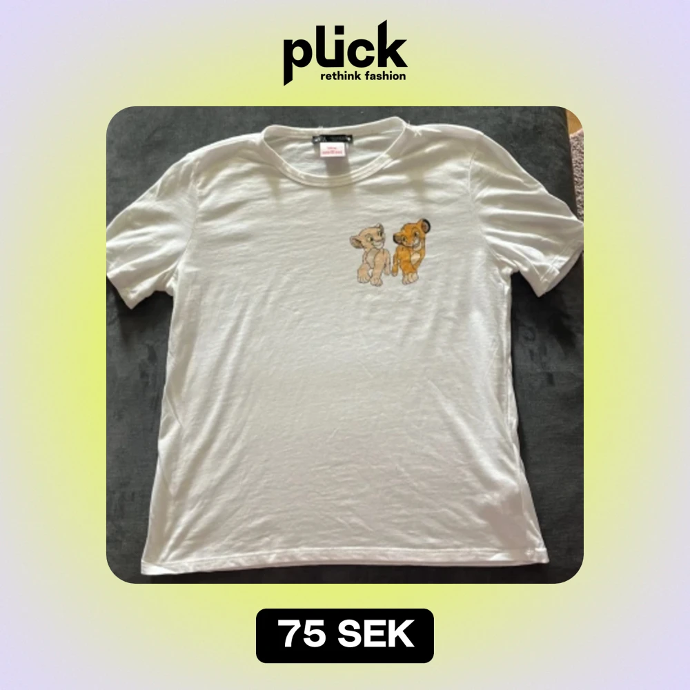 Säljer en superfin vit t-shirt från Zara med ett gulligt Lejonkungen-tryck på bröstet. Perfekt för alla Disney-fans! T-shirten är i bomull och har en normal passform med korta ärmar. Perfekt för en avslappnad stil.